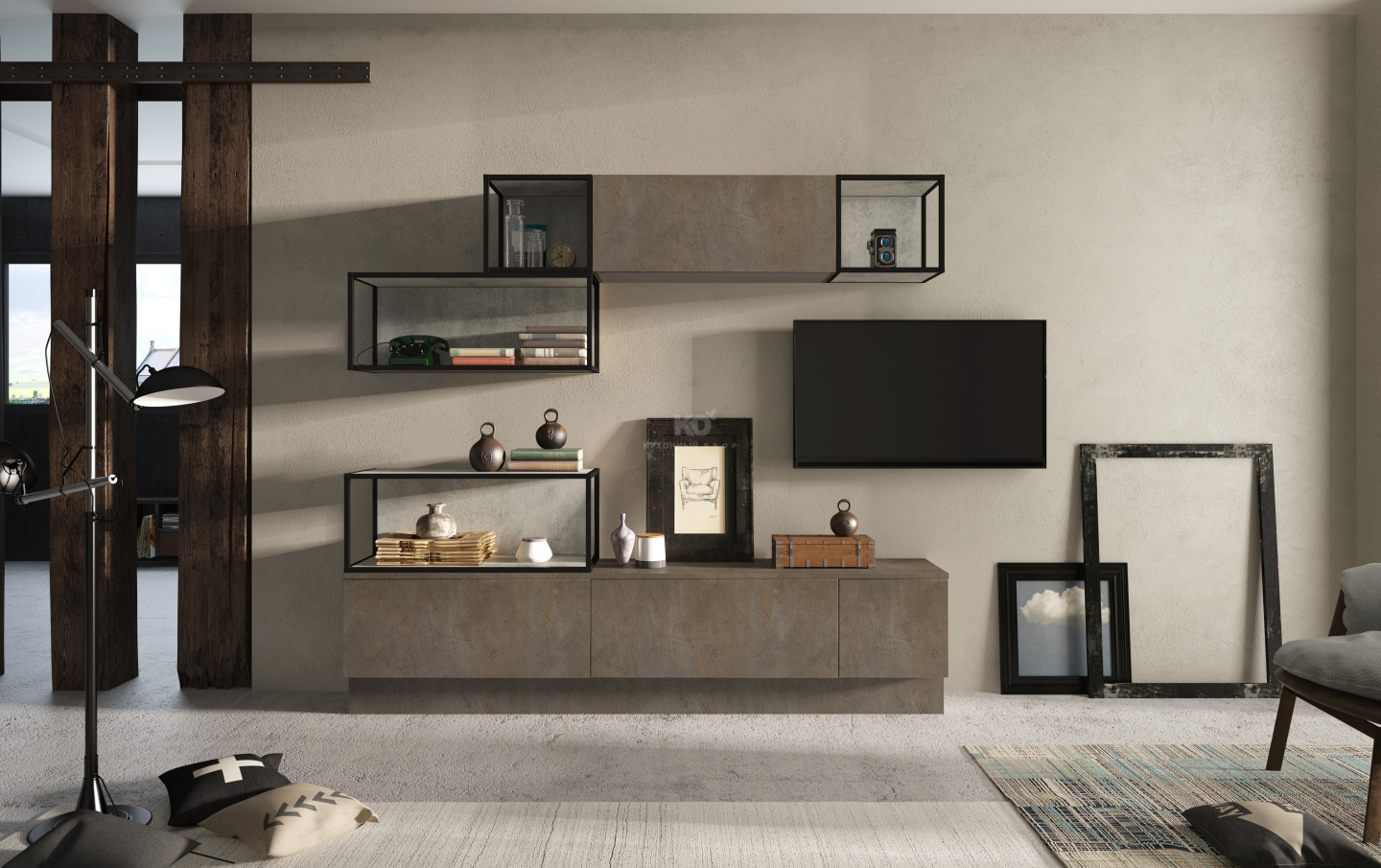 Глухие фасады смотрятся броско, и дизайн открытых зон также не отстаёт! Полки и ниши здесь имеют каркас и из высокопрочного анодированного алюминия, который прекрасно смотрится вместе с элементами грубой фактуры. «Ноа Лофт» смешивает удобство и красоту с брутальной, первобытной энергией. Эта гостиная – сила и уверенность, отраженная в Ваших интерьерах!