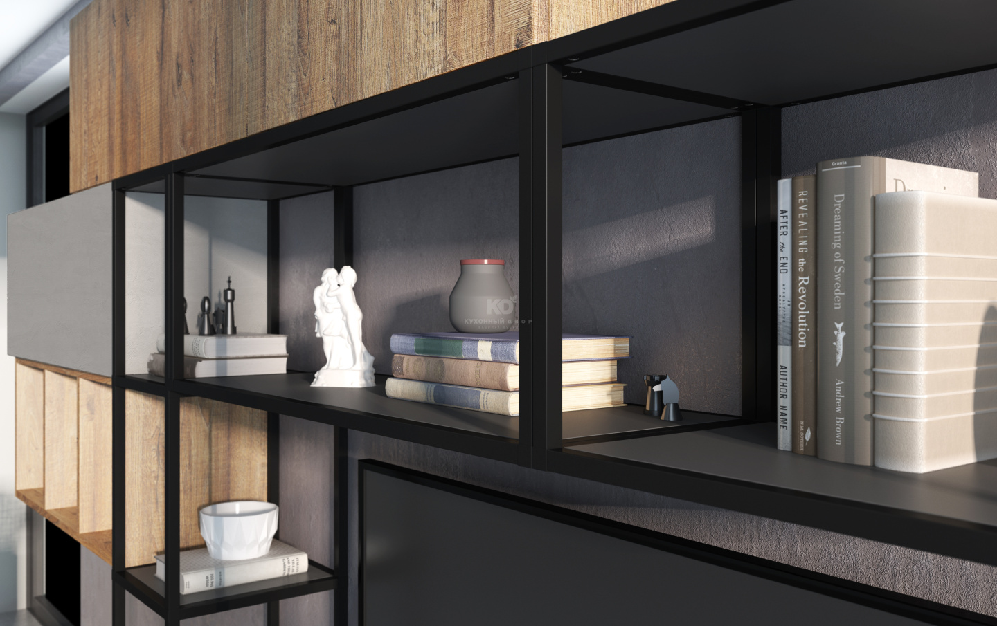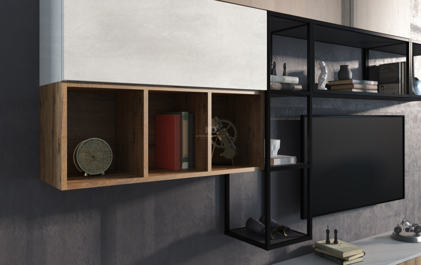 В стоимость включены: корпуса ЛДСП Egger (Германия), фасады выбранной категории, ящики, петли, подъемники, покрытие декоративное, ручки №2, цоколь Volpato (Италия), ножки, навесная система.