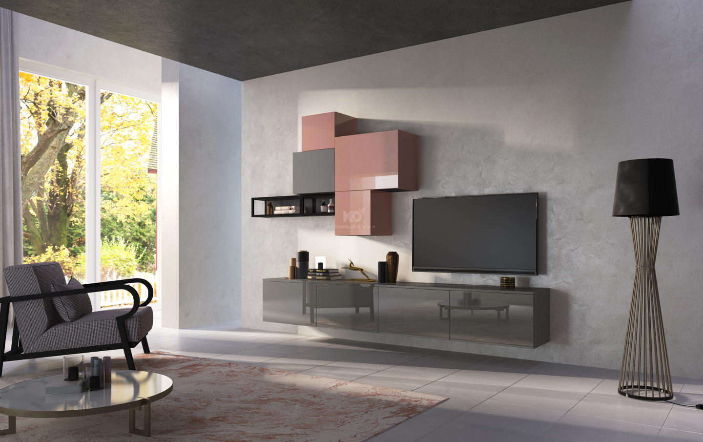 В стоимость включены: корпуса ЛДСП Egger (Германия), фасады выбранной категории, ящики, петли, подъемники, покрытие декоративное, ручки №2, цоколь Volpato (Италия), ножки, навесная система.