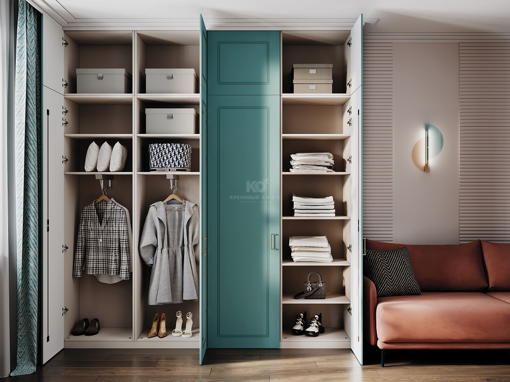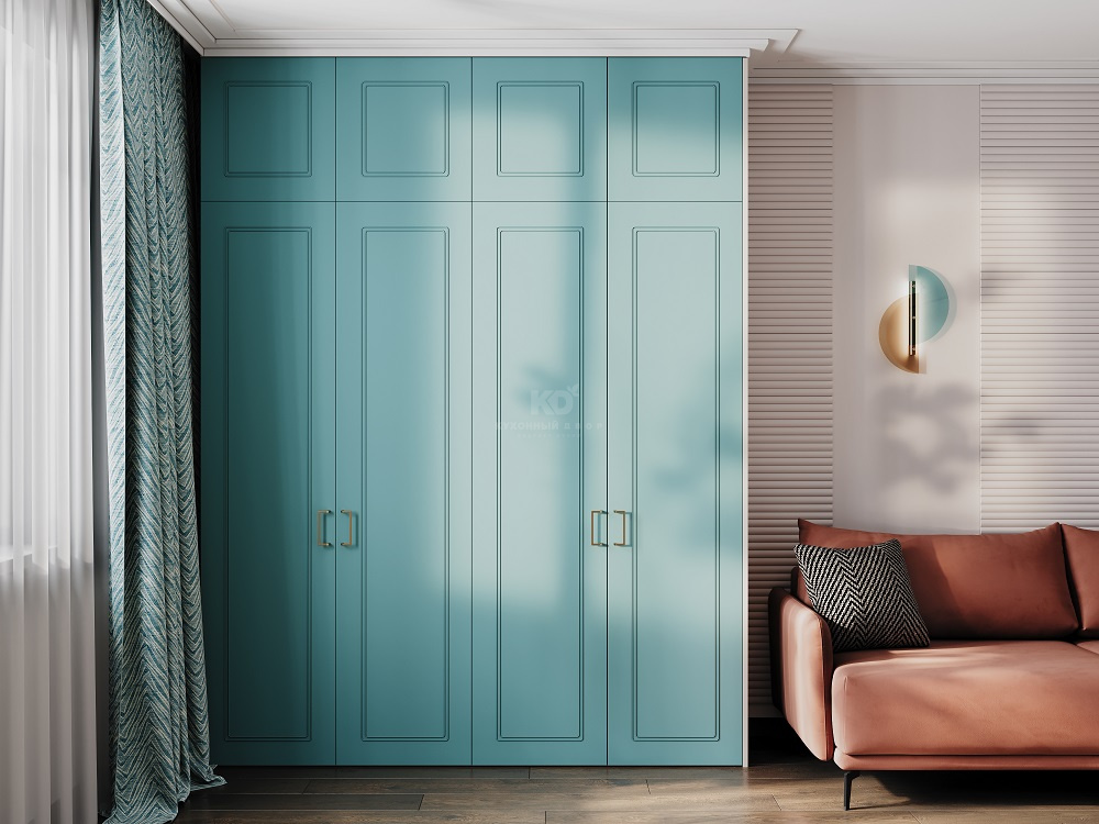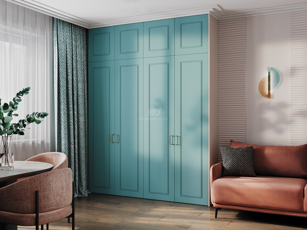 Кухня Эрика стала культовой моделью в линейке бренда «Кухонный Двор». Именно поэтому мы решили воплотить её эстетику в формате распашного шкафа. Здесь строгость геометрии сочетается с припылённо-бирюзовым оттенком — насыщенным, но сдержанным. Классические детали фасада делают модель уместной как в ультрасовременных интерьерах, где хочется немного эклектики, так и в классический дизайн, где важны устойчивость образа и комфорт.