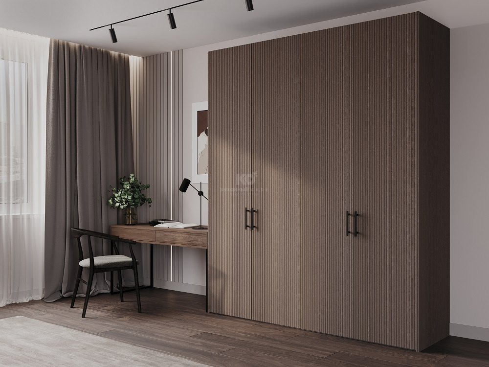 Четырёхстворчатый шкаф кофейного оттенка — настоящая мечта Мари Кондо. Он не требует «магической уборки» или марафонов по расхламлению: порядок становится естественным состоянием. Мы продумали всё: глубокие полки, удобные рейлинги, выдвижные ящики на нужной высоте — чтобы каждая вещь находилась на своём месте и была легкодоступна. Ноа Плиссе — это шкаф, который наводит порядок и в пространстве, и в мыслях.