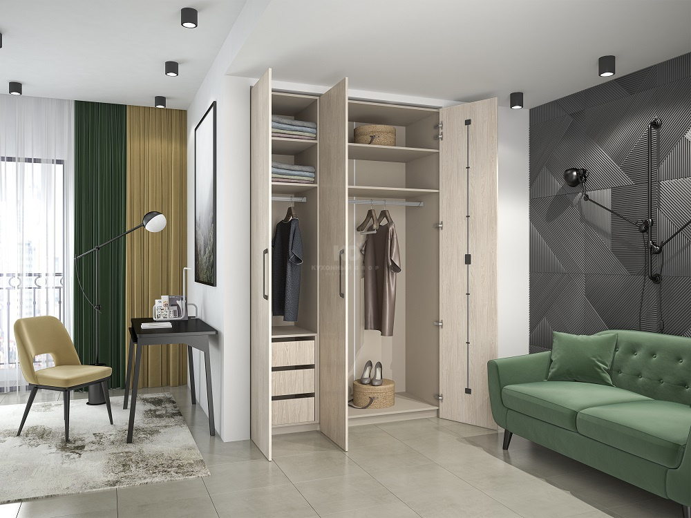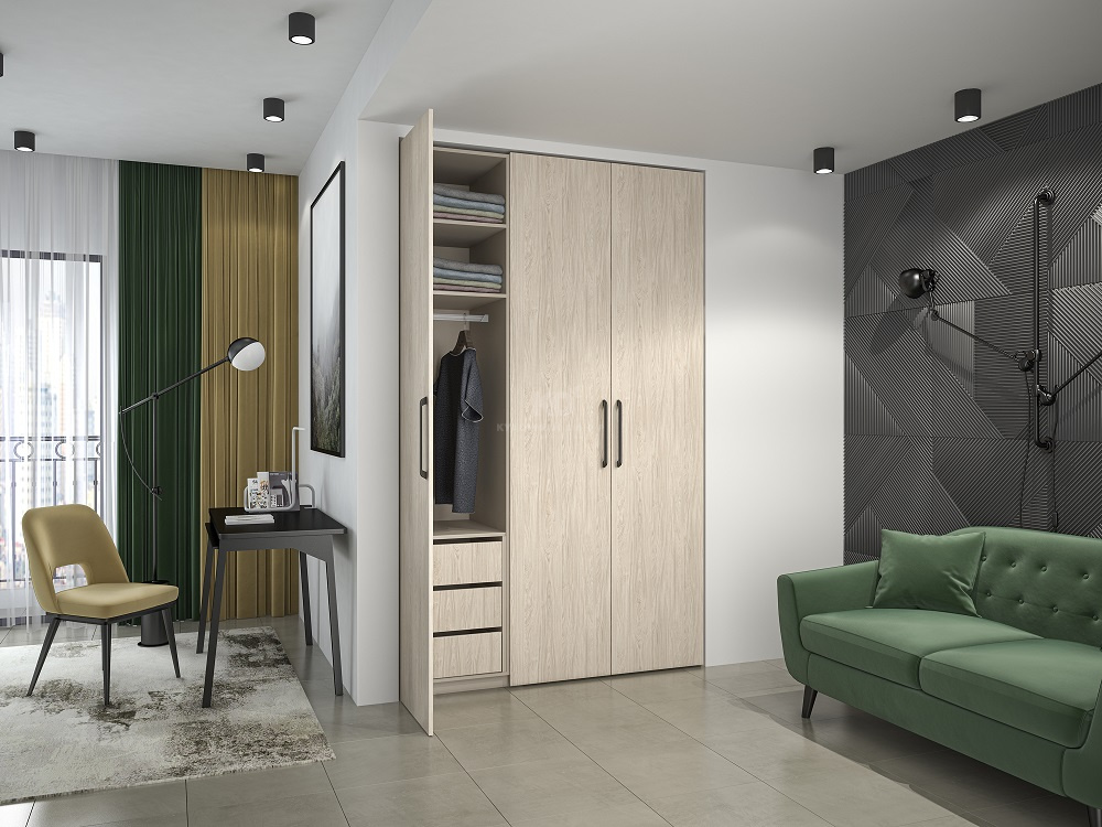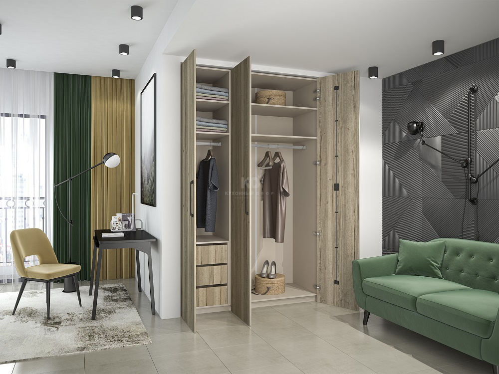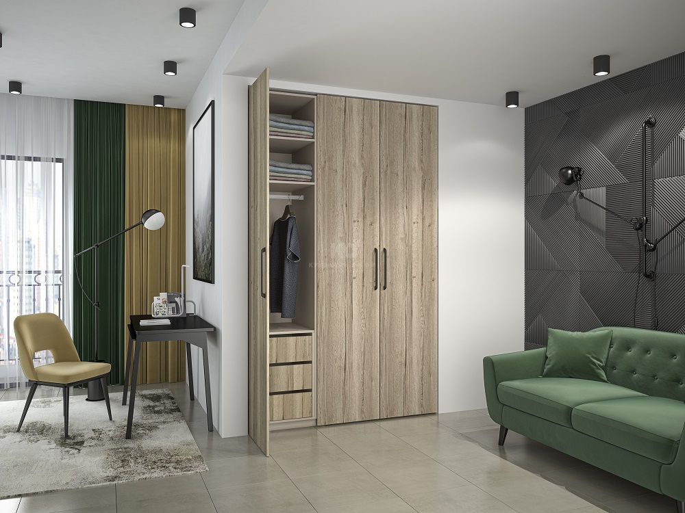 Ищете идеальное решение для хранения большого количества вещей? У КД есть ответ – шкаф «Стоун Вуд». Он изящен, вместителен и не занимает много места. А его внутреннее пространство позволяет с комфортом разместить всё что угодно – от футболок и полотенец до обуви и верхней одежды. При этом шкаф может быть установлен в нише, что делает его органичной и незаметной частью интерьера. В таком виде «Стоун Вуд» будет прекрасен даже в гостиной!