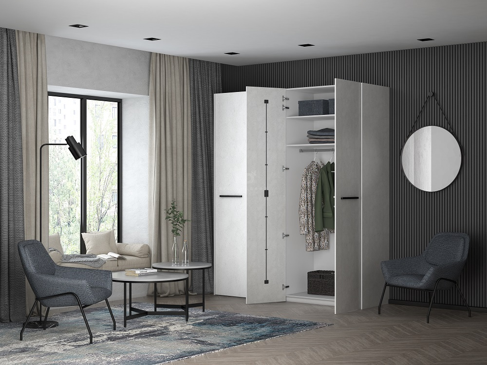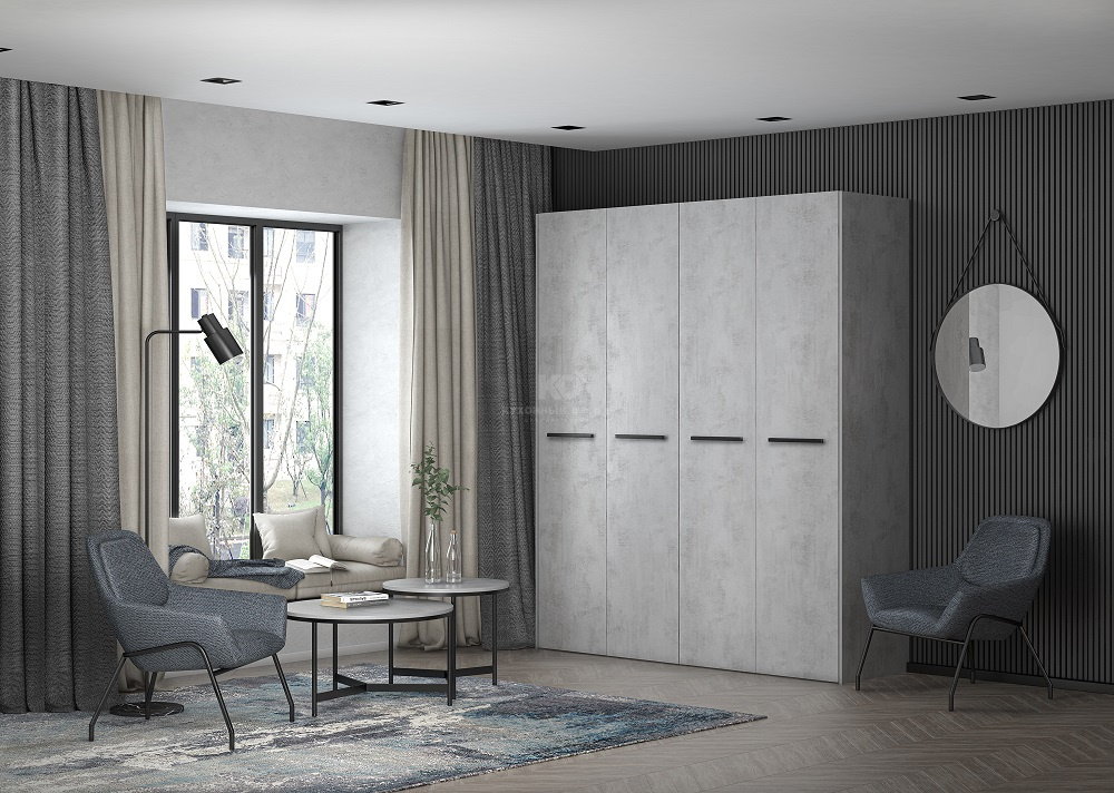 – «За ним, как за каменной стеной», – говорят о настоящем мужчине. Будь «Стоун» человеком, о нем сказали бы то же самое, ведь этот шкаф одним своим видом демонстрирует абсолютную надёжность. Всё благодаря материалам: фасады шкафа выполнены из экоплиты, имитирующей текстуру бетона. Экоплита легка, экологична, долговечна и устойчива к воздействию ультрафиолета. Это значит, что Ваш «Стоун» будет комфортно чувствовать себя даже в помещениях с интенсивным естественным освещением.