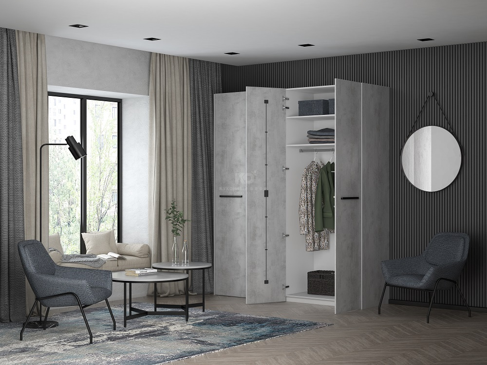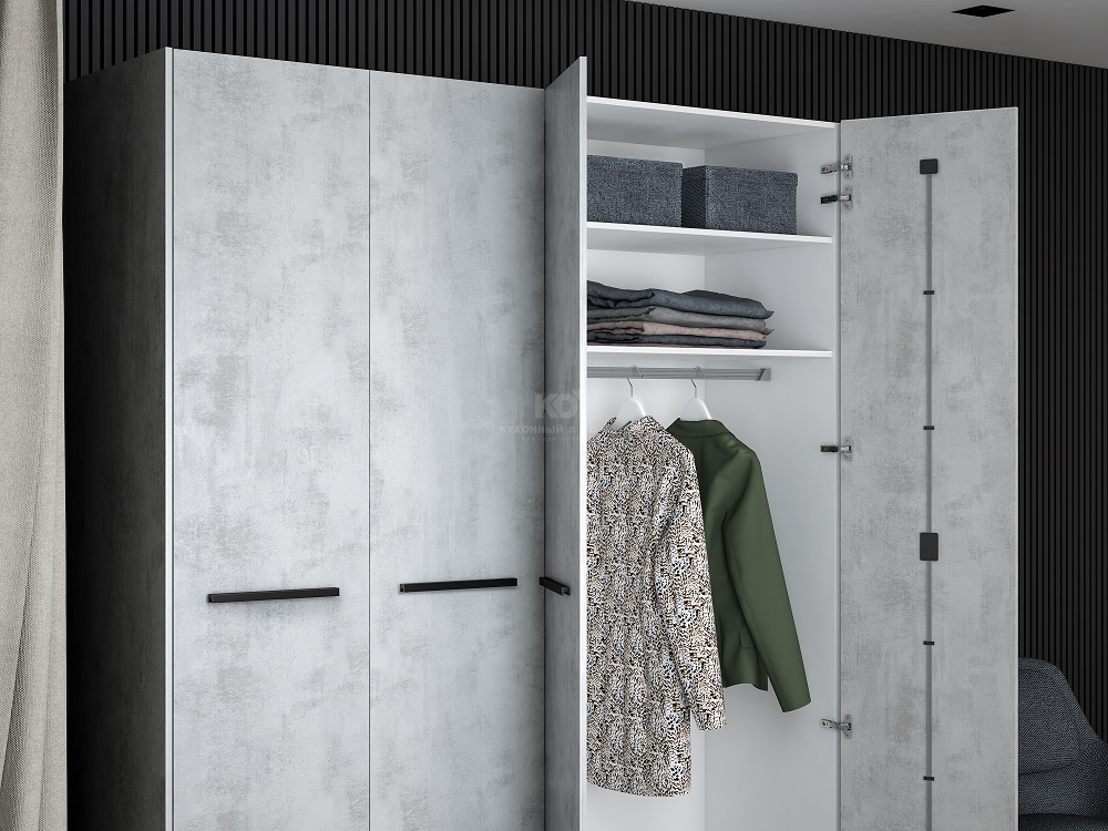 Любопытный факт: шкаф создан на основе облика одноимённой кухни, гостиной и прихожей от бренда КД. Вы сможете легко оформить весь дом в единой стилистике «лофта», просто приобретя несколько типов мебели под названием «Стоун»!