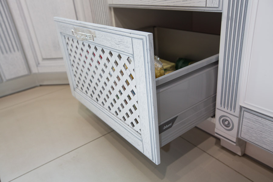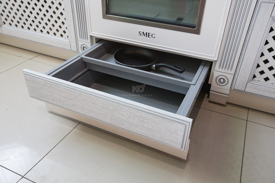 Кухонный гарнитур «Виконт» — это лучшее классическое наследие в современном исполнении. Сохранив особенности классического внешнего вида, кухня белый дуб «Виконт», в то же время, полностью соответствует представлениям о том, какой должна быть кухня в 21 веке, изготовленная на заказ: эргономичной, функциональной, долговечной и безопасной. Все это стало возможным, благодаря использованию современных материалов, которые проходят многоступенчатую специальную обработку, повышающую их эксплуатационные свойства. В частности, фасады гарнитура «Виконт», изготовленные из массива дуба, обрабатываются по уникальной технологии Open Pore: благодаря специальному составу лака и методике его распыления под давлением, мельчайшие поры фасадов обволакиваются суперстойким лаком. Это позволяет сохранить первозданный вид белой кухни с серебром на долгие годы.