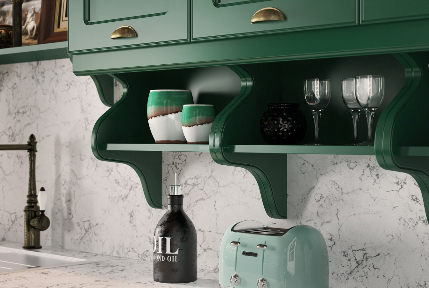Как изумруды делает прекрасными точная огранка, так и «Адриана Эмеральд» становится неповторимой благодаря продуманным дизайнерским решениям. Эта кухня создана, чтобы Ваш дом восхищал своей красотой!