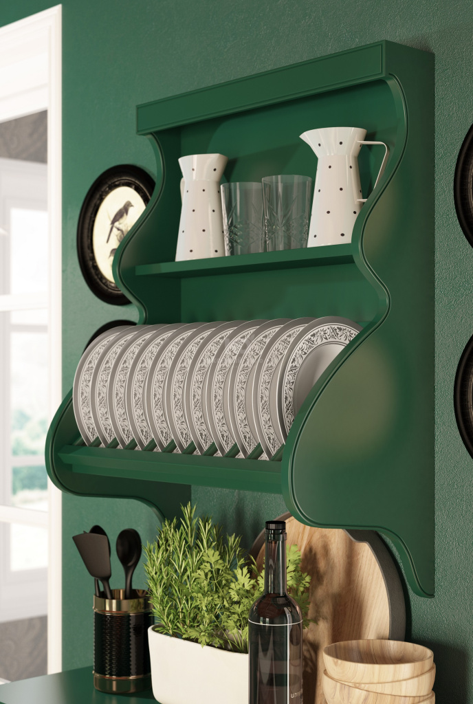 «Адриана» символизирует красоту природы, а природа не терпит переизбытка строгих форм. Поэтому в данной модели прямые линии гармонируют с плавными изгибами. Верхний ярус венчают классические карнизы, навесные ящики совмещены с изящными открытыми полками, а открытая зона хранения посуды имеет элегантные «волнообразные» торцевые части. Такое сочетание форм позволяет «Адриане» выглядеть безупречно в интерьерах любой площади!