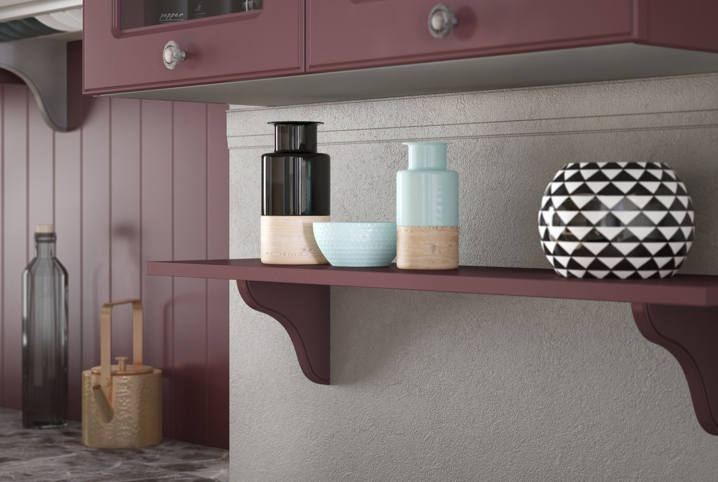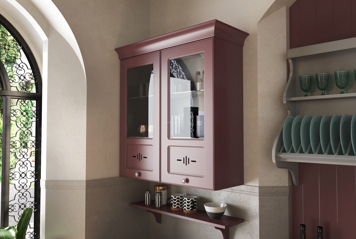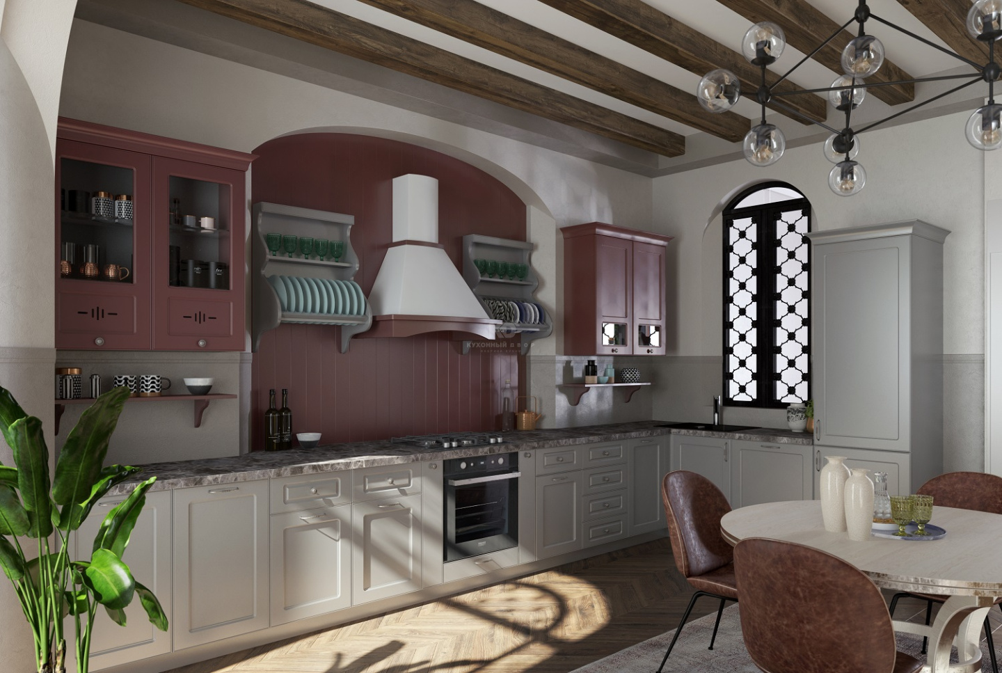 «Свобода!» – вот первое слово, которое приходит на ум, когда оказываешься рядом с такой кухней. Неповторимое ощущение простора роднит «Адриану Вереск» с кухнями в скандинавском стиле. При этом модель, конечно же, относится к классике. Об этом говорит скруглённая по углам фрезеровка фасадов из МДФ, массивная вытяжка, элегантные ручки «серебро Антик», комбинация глухих и застеклённых зон в фасадах верхнего яруса, наличие изящных карнизов, открытые элементы со сложными скруглёнными торцами. Также здесь присутствует точечная сквозная декоративная фрезеровка. Это «фирменная» черта «Адрианы», которая делает интерьеры особенно очаровательными.