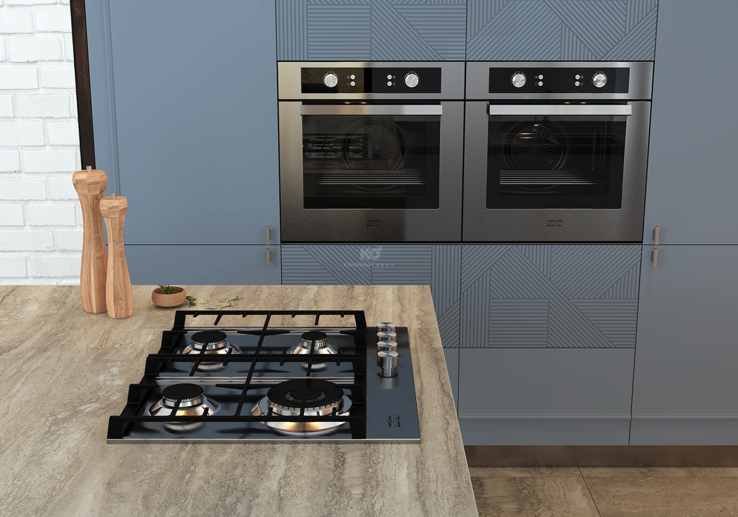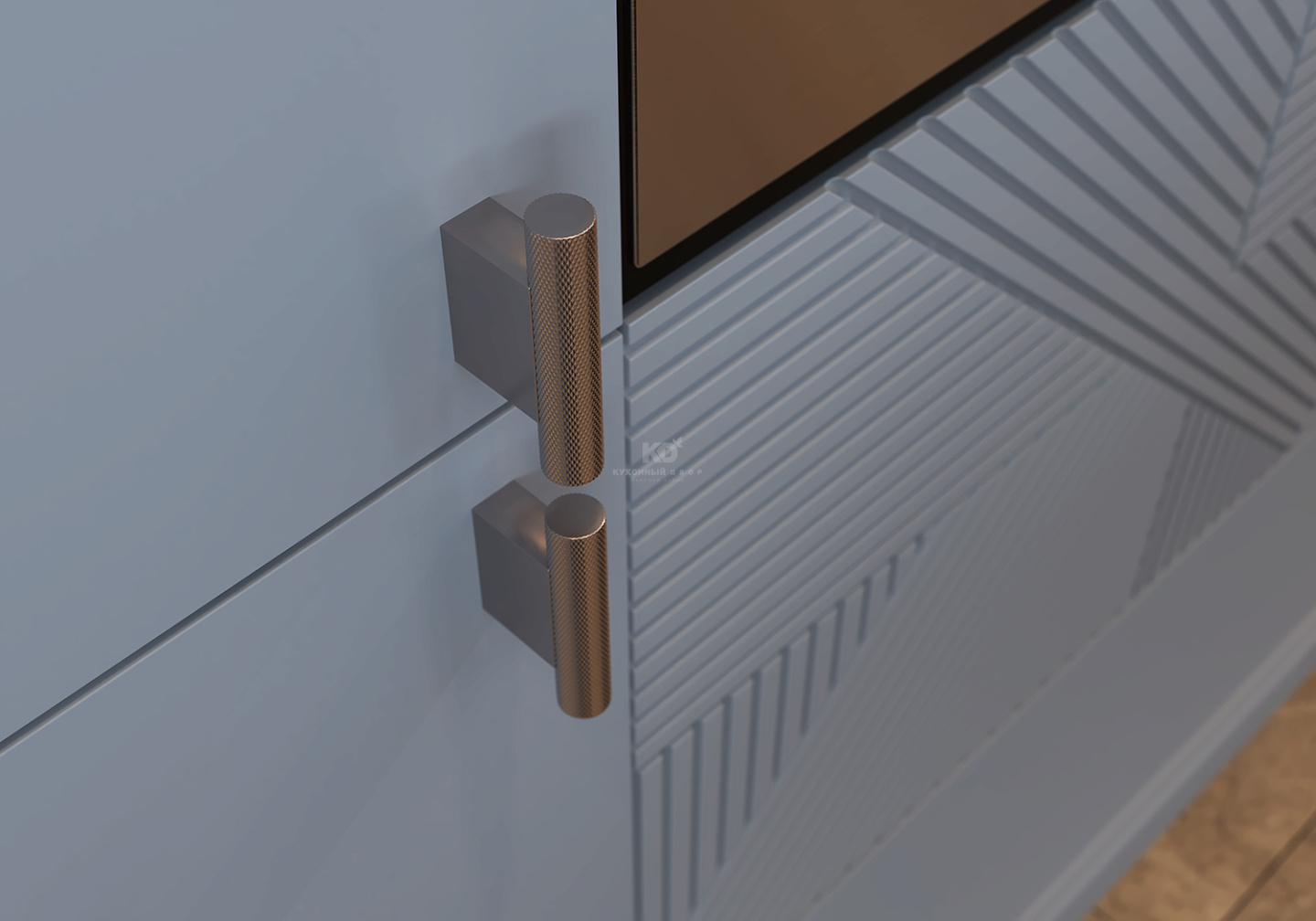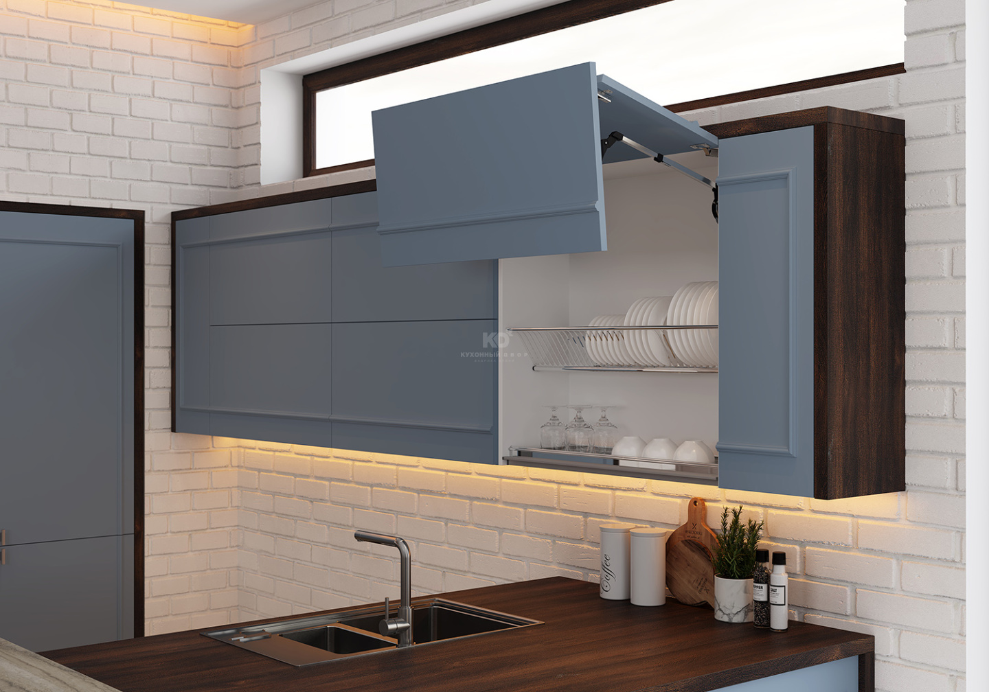 Подчеркнуть и дополнить столь нетривиальную внешность призваны корпуса и столешница, выполненные в единой цветофактуре под дерево. Окаймляя фасады словно рамка картины, они придают «Астрид» окончательный, завершённый вид. А минималистичная вытяжка и контрастная столешница в обеденной зоне – финальный штрих, вносящий нотку модерна в благородный неоклассический облик.
