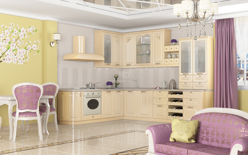 Блистательная внешность позволяет этой модели быть красивой в любом исполнении. Она хороша и как большая кухня для просторных помещений, и как уютный гарнитур для компактных квартир. Способность преломлять и отражать свет позволяет модели расширять окружающее пространство, особенно при хорошей иллюминации. Благодаря этому интерьеры, в которых стоит «Айвори», наполняются лёгкостью.