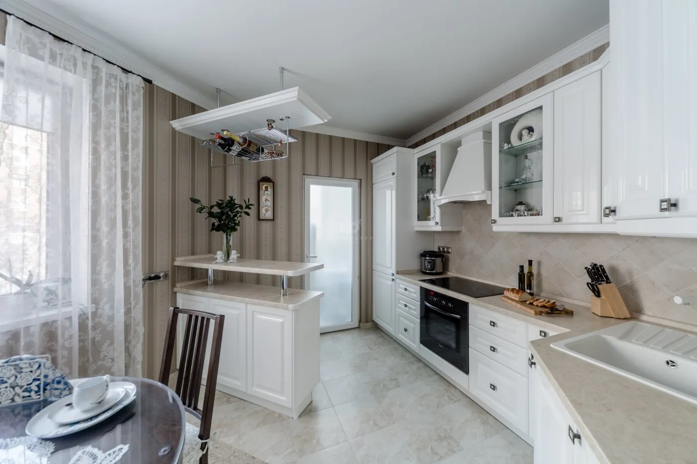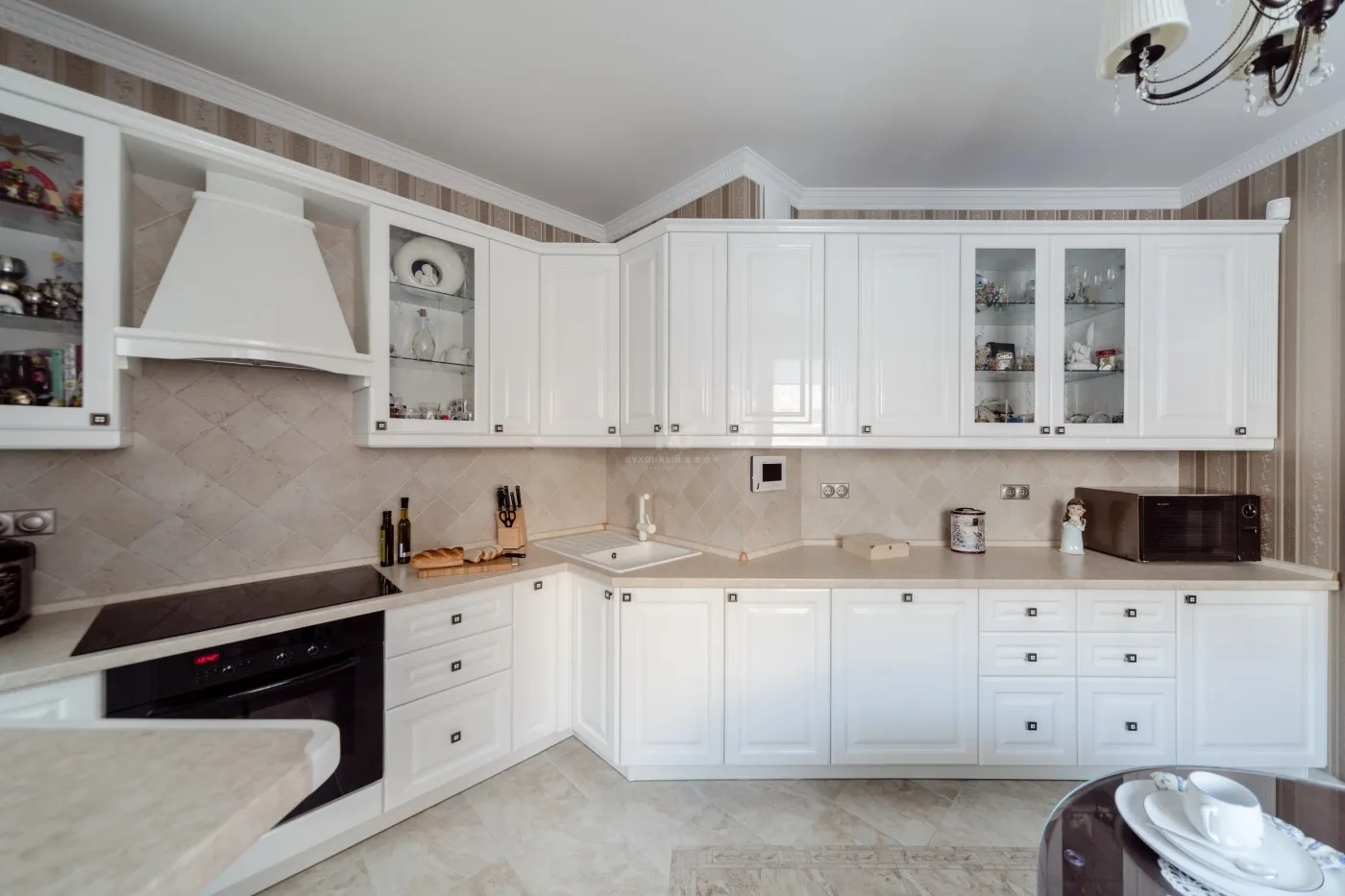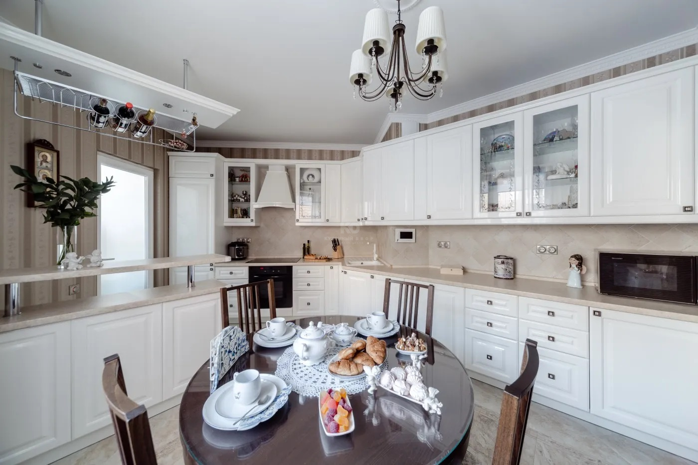 Эта кухня бережно хранит «культурный код» предыдущих эпох и, в то же время, остаётся на острие прогресса. Она оснащена по последнему слову техники, и это выглядит гармонично! Холодильник, ПММ и вытяжка могут быть скрыты, чтобы сохранять целостность классического образа. А духовой шкаф и варочная панель только добавляют ему изящества. Ну и конечно же, комфорт на этой кухне обеспечивает множество современных аксессуаров и систем хранения.