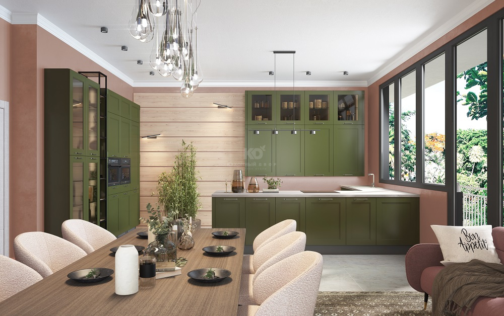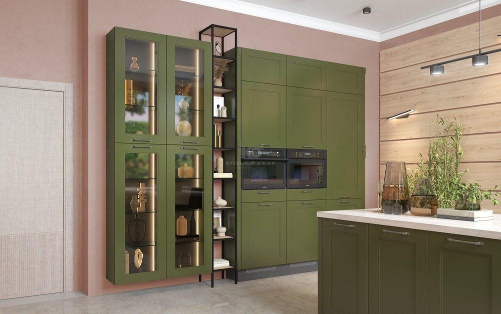 «Эрика Арт» покоряет не только разнообразием оттенков, но пластичностью форм. Кухня выглядит «по-классически» благородно, но при этом не перегружена пилястрами, карнизами или вычурной лепниной. А ещё она смело сочетает вместительные буфеты с витражами, стеллажи с каркасом из анодированного алюминия и антресоли с фасадами разных типов. Смотрится очень трендово!