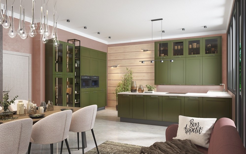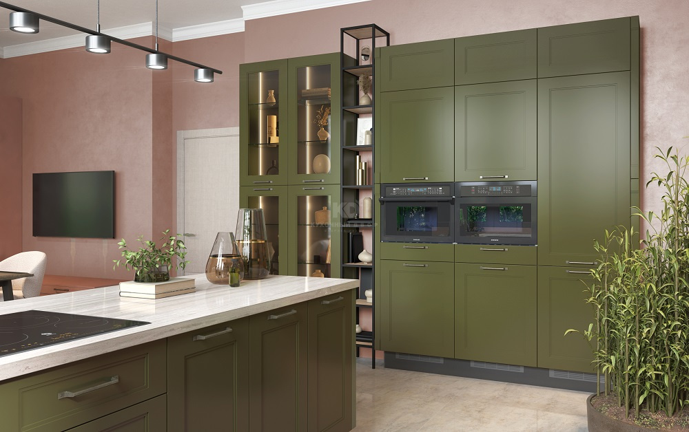 Пожалуй, самая выразительная деталь «Эрики Арт» – её фасады из МДФ с прямоугольной фрезеровкой. Они покрыты матовой эмалью по технологии «Дабл Коат». Благодаря этой технологии поверхности обретают прочность, влаго- и термостойкость, а также высокую цветовую насыщенность. Кстати о цветах – «Эрике Арт» их доступно свыше 1000! С этой моделью Вы легко наполните интерьер желаемой атмосферой.