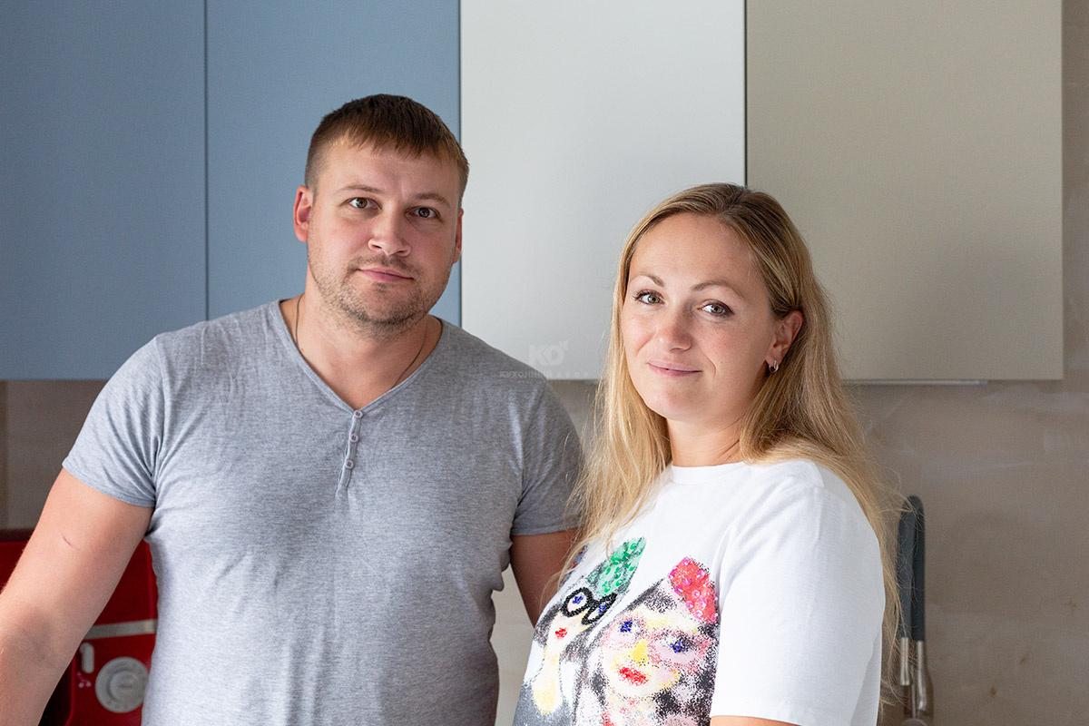 Кухня получилась «воздушной», но, вместе с тем, притягательной. За лёгкость здесь отвечает бархат фасадов и их нежная цветовая палитра. А притягательные акценты умело выставлены с помощью техники! Взгляните, в каких сочных цветах выполнены фильтр для воды, духовой шкаф и миксер! Словно яркие штрихи на монохромном полотне они попадают точно в фокус Вашего внимания. И помогают при этом постичь глубину всей композиции!