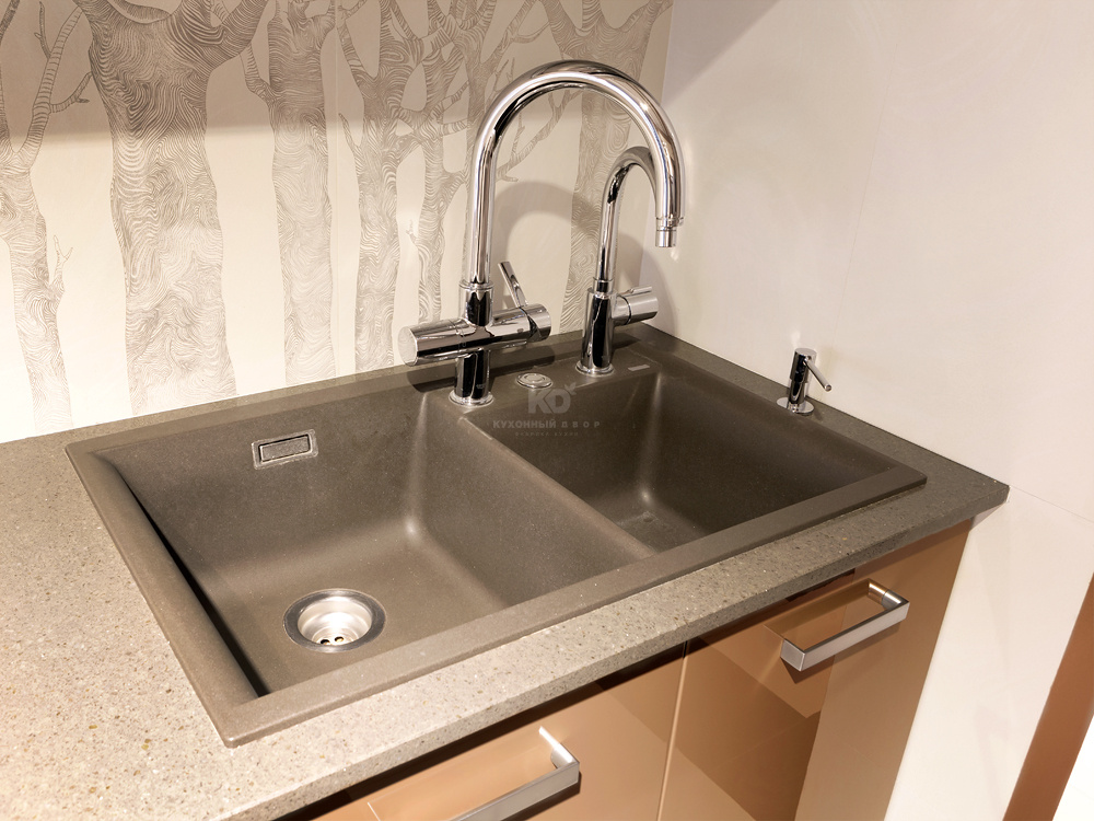 Обращаем Ваше внимание, что цена за погонный метр включает в себя: фасады выбранной категории, влагостойкую столешницу HPL (Германия) высокой прочности, корпуса ЛДСП Egger (Германия) с кромкой ABS, ящики с доводчиками , петли с доводчиками, ручки, алюминиевый поддон в стол под мойку, сушка (Италия), цоколь Volpato (Италия). Из расчета в размере 2400 мм.
