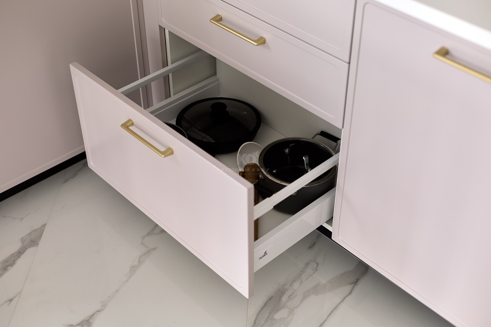 Прочность фасадов «Джейн Арт» крайне велика, ведь они создаются из МДФ и покрываются матовой эмалью по технологии «Дабл Коат». В итоге получаются поверхности, устойчивые к ударам, перепадам температур и солнечному ультрафиолету.