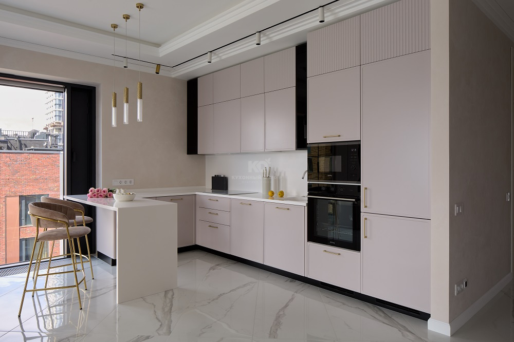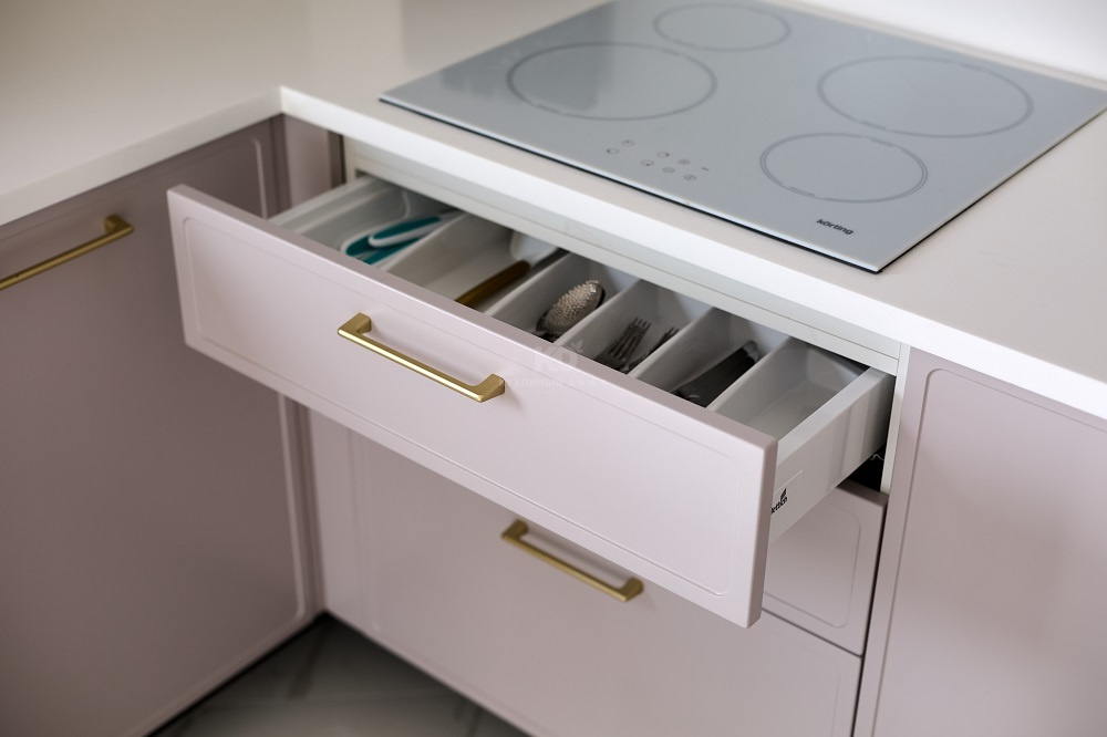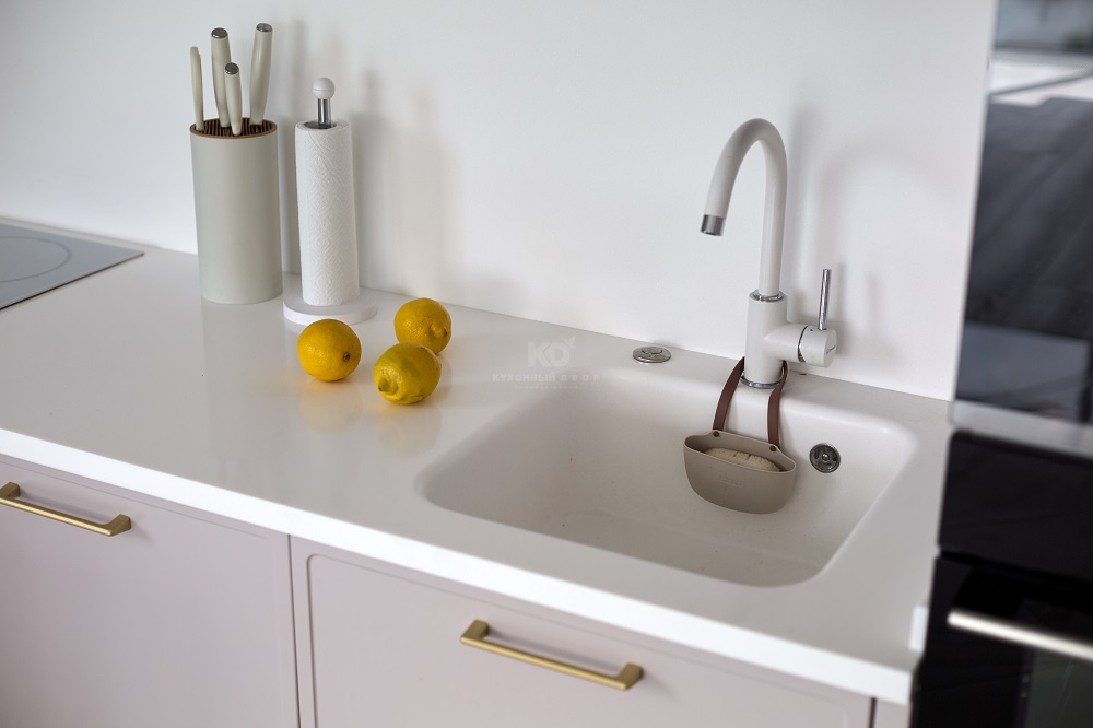 - Красота – непременный атрибут ассистентки иллюзиониста, и у «Джейн Арт» её не отнять. Модель сочетает в себе немало выразительных дизайнерских решений: фасады с двумя типами фрезеровок, зоны с тонированным остеклением, столешница из искусственного камня с интегрированной мойкой, лаконичная лицевая фурнитура и многое другое. А приятный серо-бежевый цвет фасадов прекрасно сочетается с палитрой интерьеров и визуально расширяет пространство.
