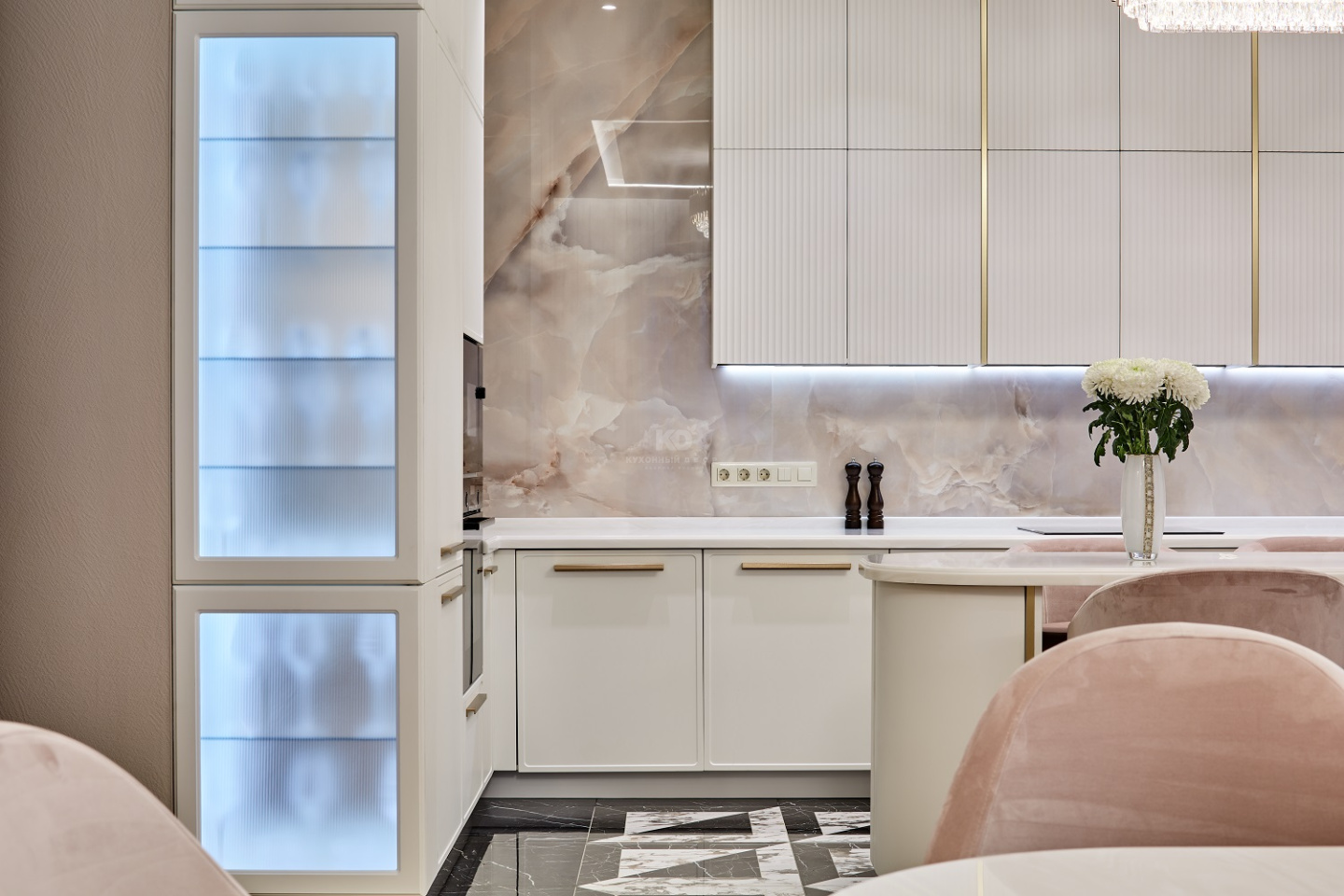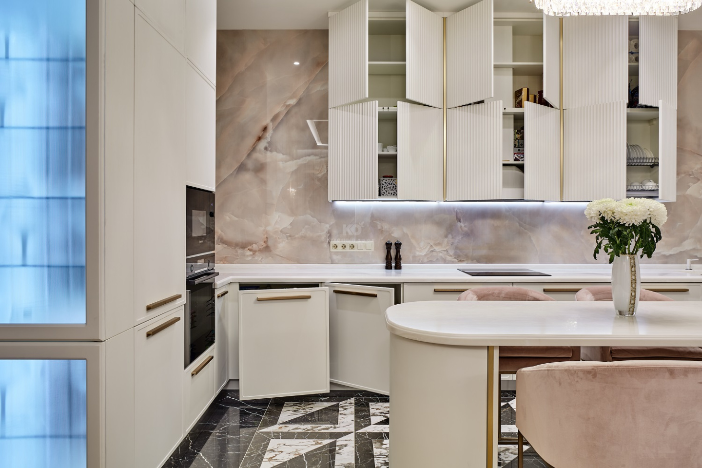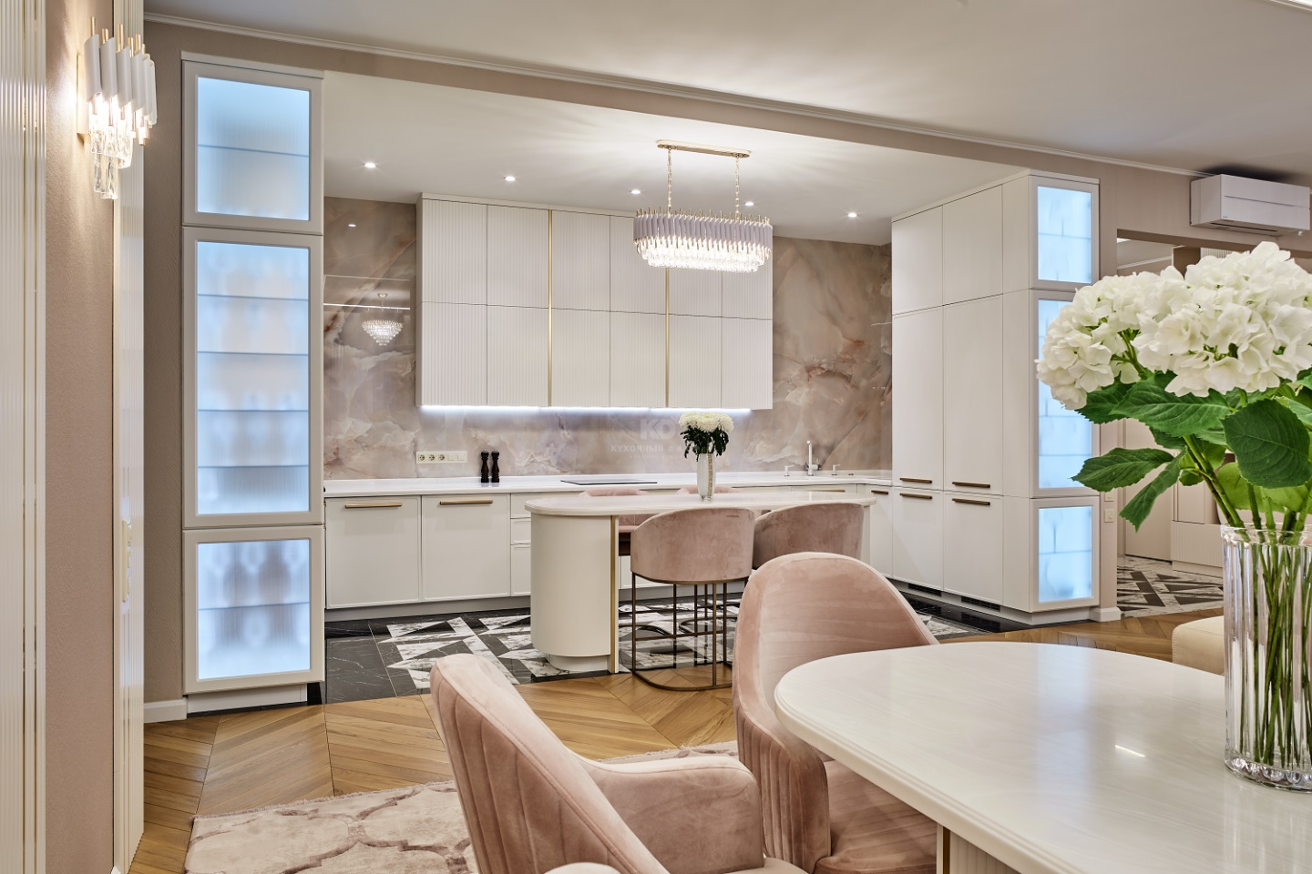 Чтобы достичь совершенства, нужно ставить максимально высокие цели. У «Джейн Вертикаль» это стремление заложено в самом имени! Перед вами роскошный, поистине королевский проект, изготовленный для одной из элитных квартир в центре Москвы. Дизайнеры «KD-Lab» получили карт-бланш на создание максимально комфортабельного гарнитура с островом. Оцените плоды их стараний!
