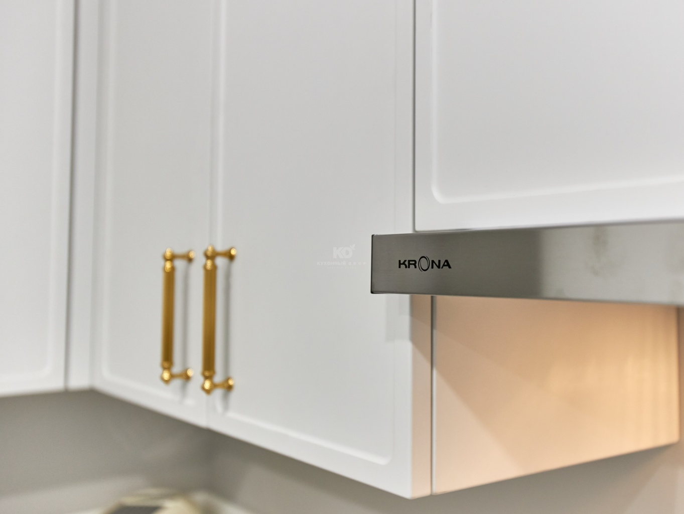 Роза Сябитова позаботилась и о выразительности кухни, выбрав для мойки, фурнитуры и цоколя «золотой» цвет. Элементы выглядят как изящные ювелирные украшения, дополняющие образ невесты. Они превосходно сочетаются с палитрой фасадов, фартука и столешницы «Джейн». Уют, красота, стиль, функциональность и ничего лишнего – вот что такое завидная кухня от КД и Розы Сябитовой!
