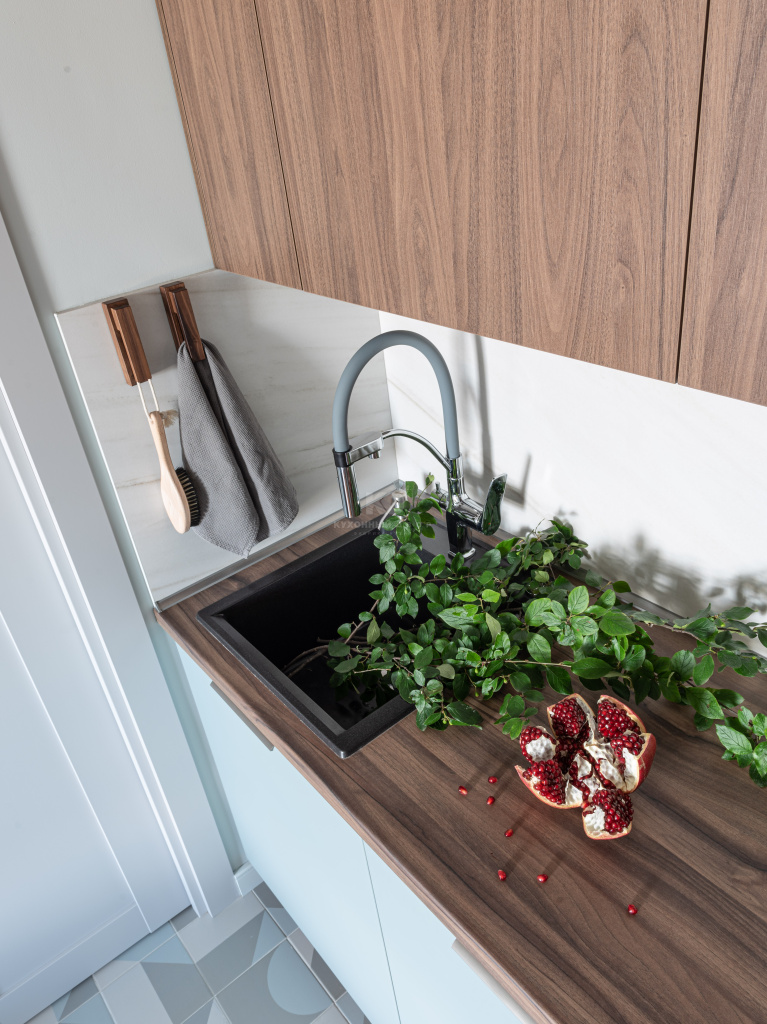 Мы также позаботились о том, чтобы кухня служила как можно дольше – фасады кухни изготовлены из инновационных материалов и покрытий, устойчивых к механическим повреждениям.