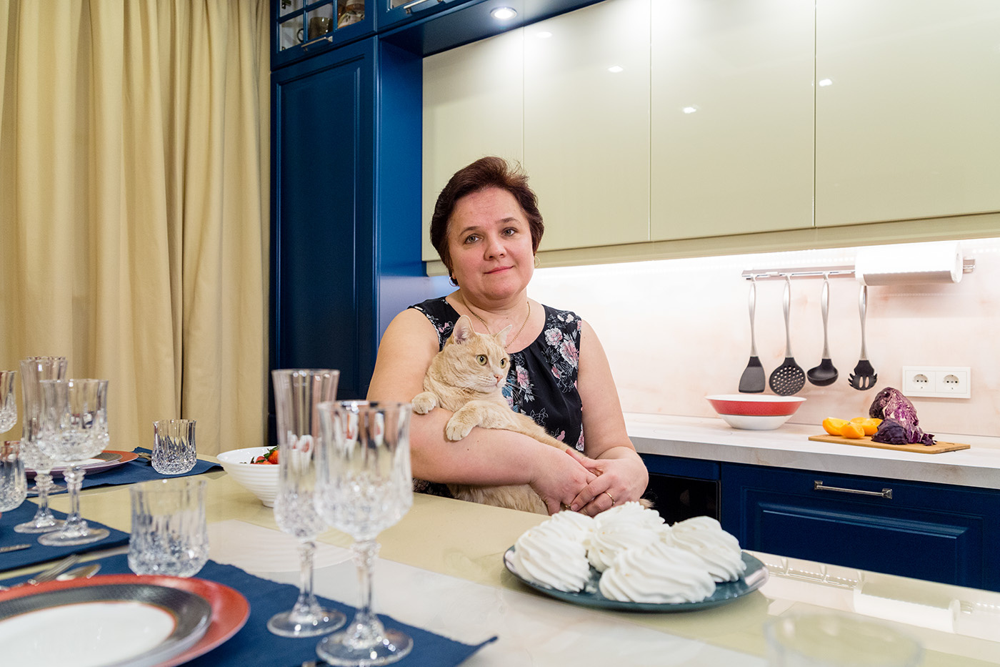 От былой стесненности нет и следа! При помощи изящного классического гарнитура «Катарина» была создана стильная зона отдыха. Семья получила полноценную кухню с огромным островом, который можно использовать как обеденный стол. Внутреннее пространство «Катарины» было укомплектоваано органайзерами, выкатными системами, бутылочницами и тысячей других незаменимых аксессуаров. Теперь о беспорядке и неудобстве можно забыть! А что насчёт обещанного уюта?