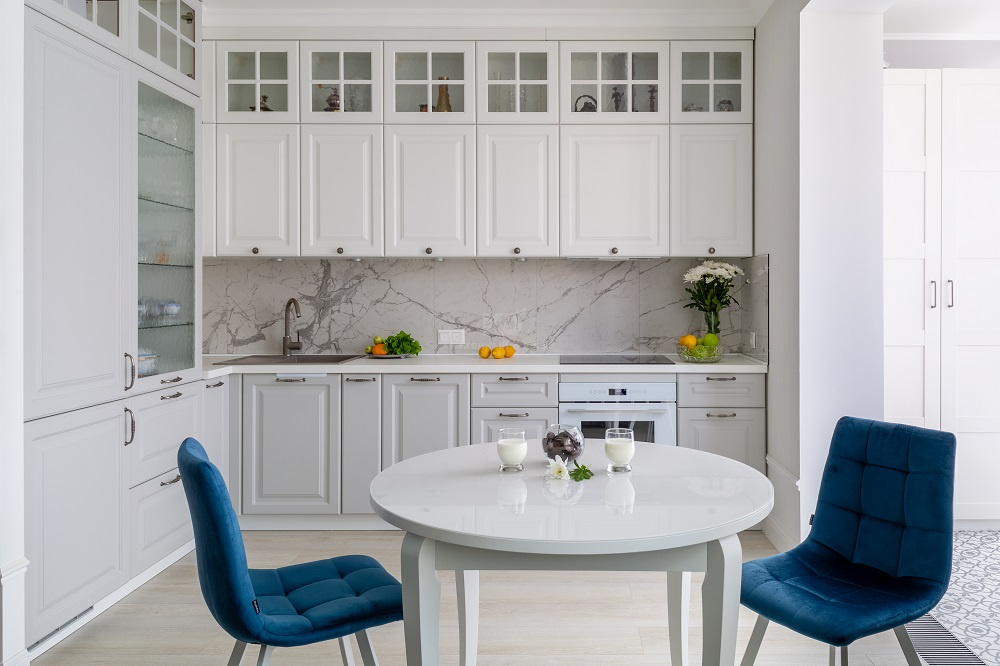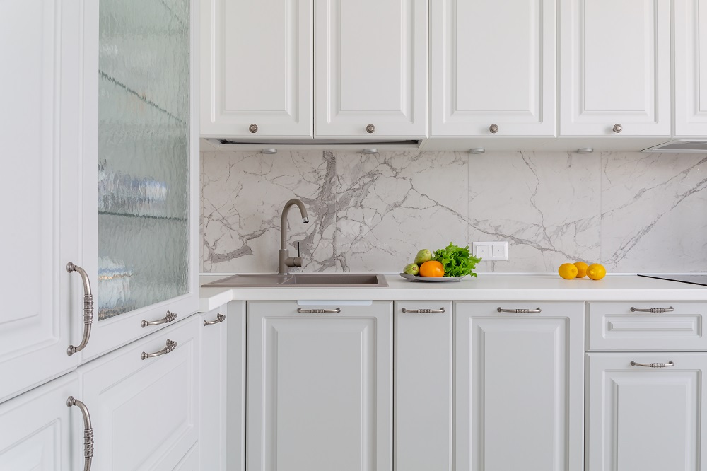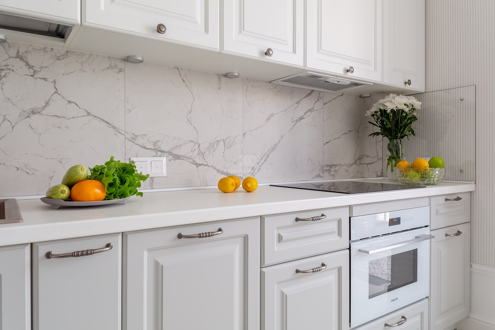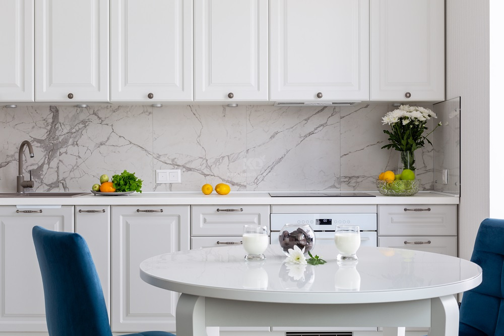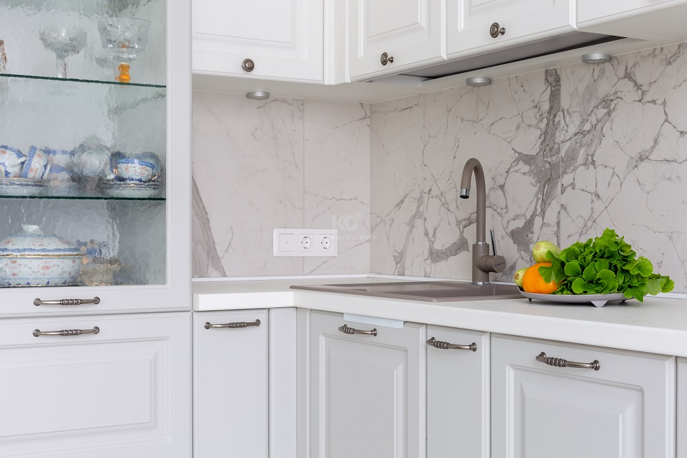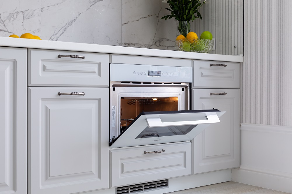 Эта модель выполнена в очаровательном французском стиле, который буквально дышит лёгкостью. Её фасады имеют прямоугольную фрезеровку, которая напоминает филёнку классических рамочных фасадов из массива. При этом фасады «Катарины» созданы из MDF и покрыты современным материалом-экомембраной. Экомембрана надёжно защищает кухню от повреждений, бытовой химии и солнечного ультрафиолета. С таким покрытием кухня способна десятилетиями сохранять первозданный цвет! А это очень важно, ведь именно удачно подобранный цвет позволяет «Катарине» визуально расширять и «облегчать» пространство.