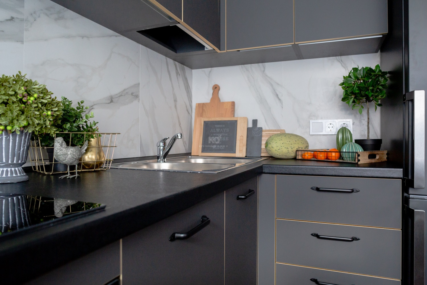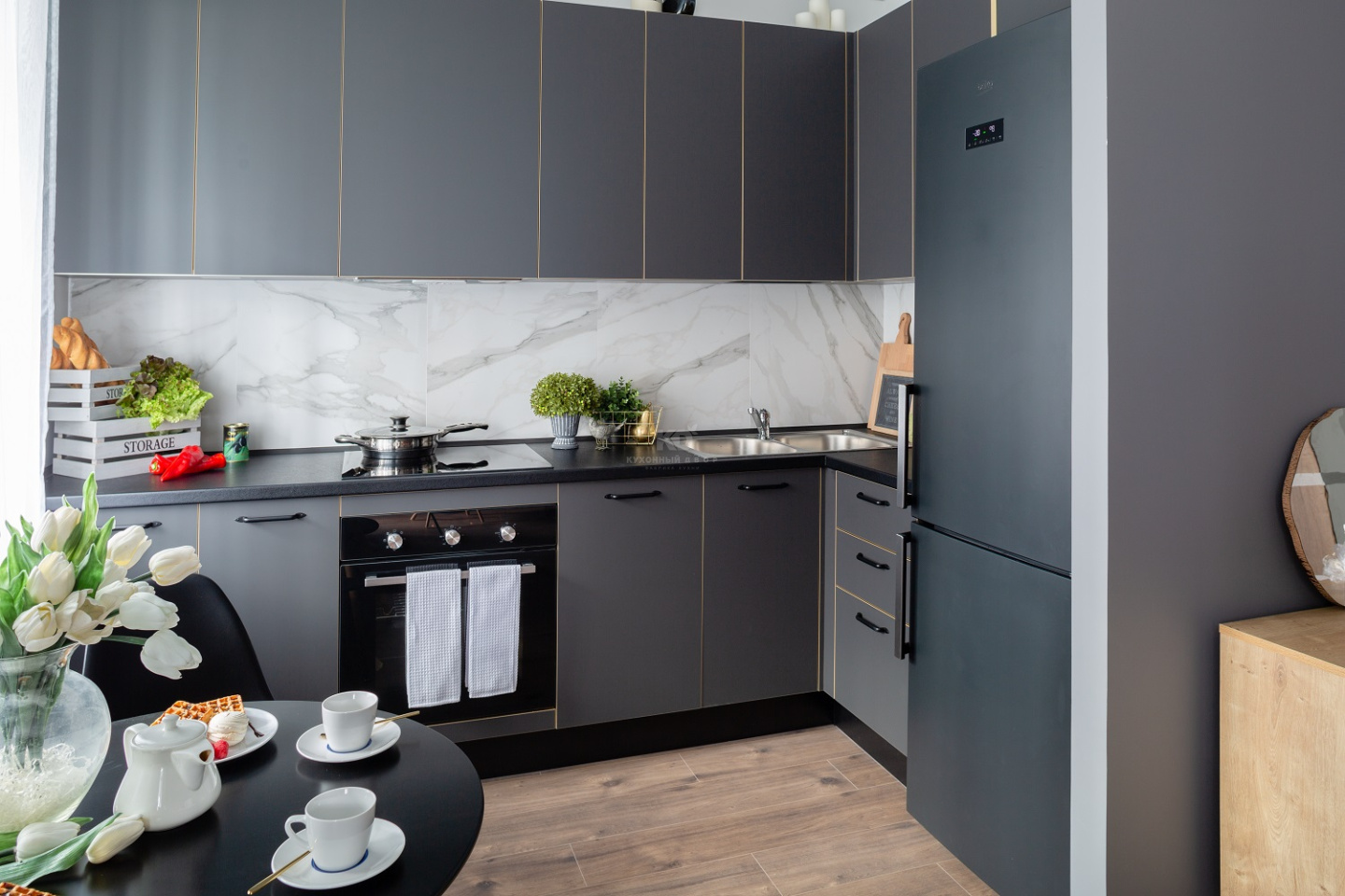 Вместе с Александрой нам предстояло создать гарнитур для уютной квартиры-студии площадью 40м2. А что нужно, чтобы студия выглядела по-настоящему красиво? Нужна кухня, которая будет гармонировать со всем окружающим интерьером! Здесь этой кухней стала «Ханна Стил». Ее серые «бархатистые» фасады «Extra Touch» безукоризненно вписались в общую стилистику помещения. Кухня полностью и всецело поддержала любовь своего хозяина к «лофту», а заодно внесла в интерьер оригинальные нотки. Взгляните, как изящно ее облик подчёркнут уникальными «золотистыми» кромками! Эти кромки – еще одна уникальная черта модели «Ханна Стил». Они добавляют облику кухни объёма и делают ее потрясающе выразительной!
