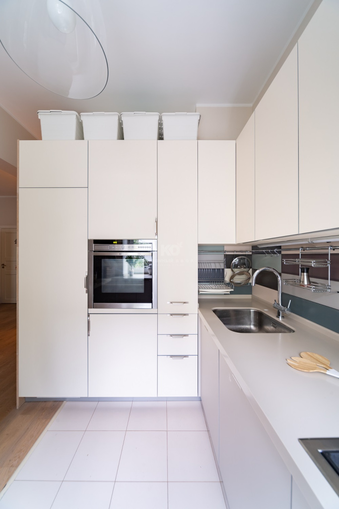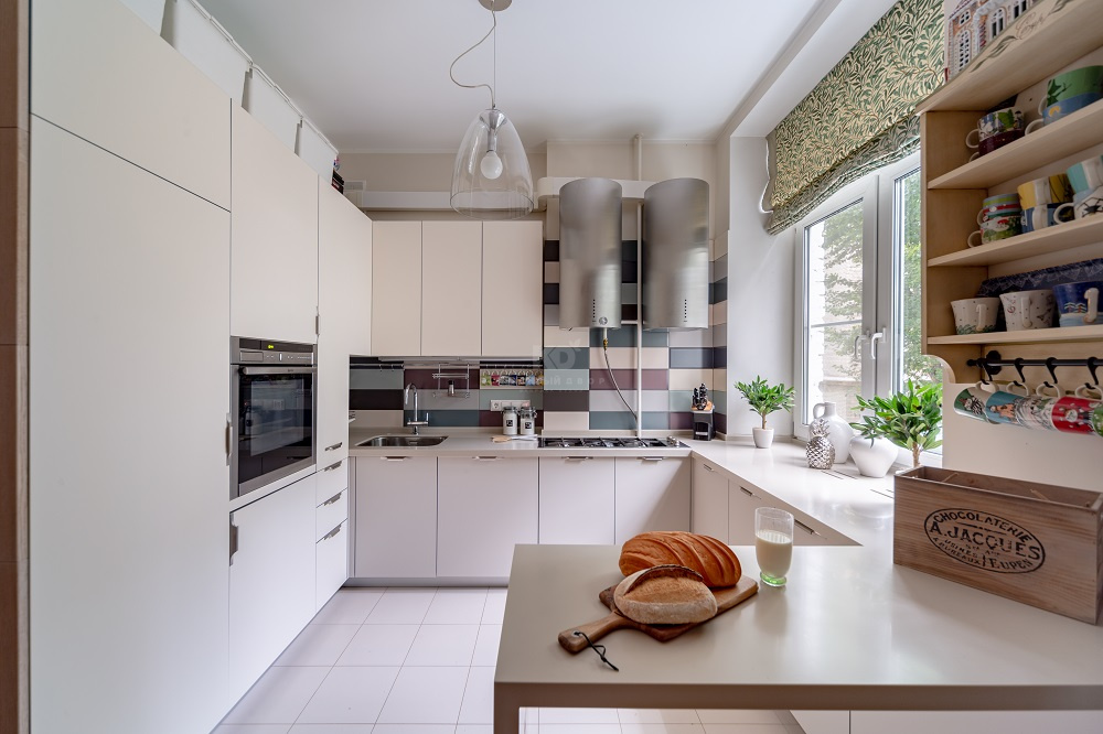 Фасады этой «Ханны Стилы» имеют очень приятный цвет, полностью идентичный цвету стильной столешницы из искусственного камня. Выполненная в единых кремовых тонах, кухня выглядит удивительно лёгкой и «воздушной». Как говорит Тутта Ларсен, ее «Ханна Стил» лёгкая и аппетитная, словно зефирка! Но столь невесомый облик выглядел бы неестественно без выразительных контрастов. Здесь их роль выполняют «стальные» ручки и кромки фасадов. Они гармонично сочетаются с современной бытовой техникой, «прорисовывают» контуры кухни и придают её красоте окончательную завершенность.