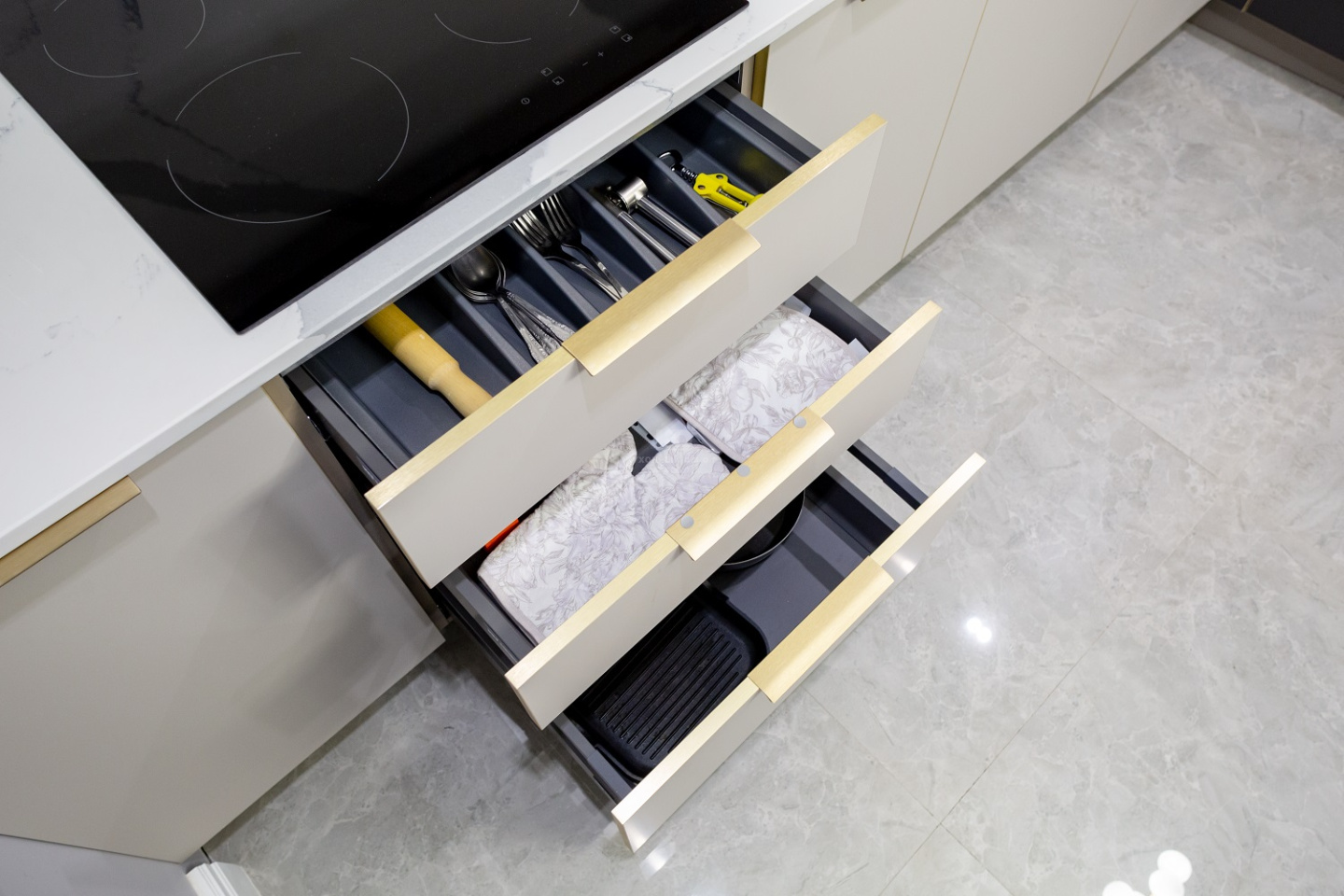 Обращаем Ваше внимание, что цена за погонный метр включает в себя: фасады выбранной категории, влагостойкую столешницу HPL (Германия) высокой прочности, корпуса ЛДСП Egger (Германия) с кромкой ABS, ящики с доводчиками , петли с доводчиками, ручки, алюминиевый поддон в стол под мойку, сушка (Италия), цоколь Volpato (Италия). Из расчета в размере 2400 мм.
