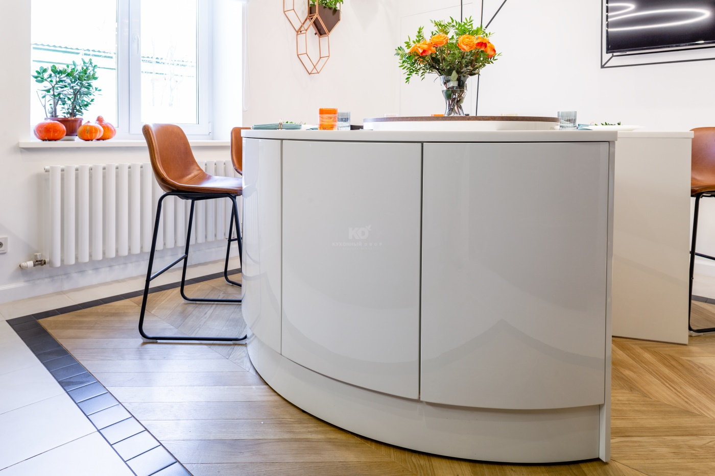 Вообще не только остров, но и весь гарнитур продуман до мелочей в плане внутреннего оснащения. «Ханна Стил» изобилует удобными полками, выдвижными системами и полезными аксессуарами. На этой кухне найдётся всё необходимое для создания самых сложных кулинарных шедевров. Отныне здесь каждый завтрак, обед и ужин будет незабываемым!