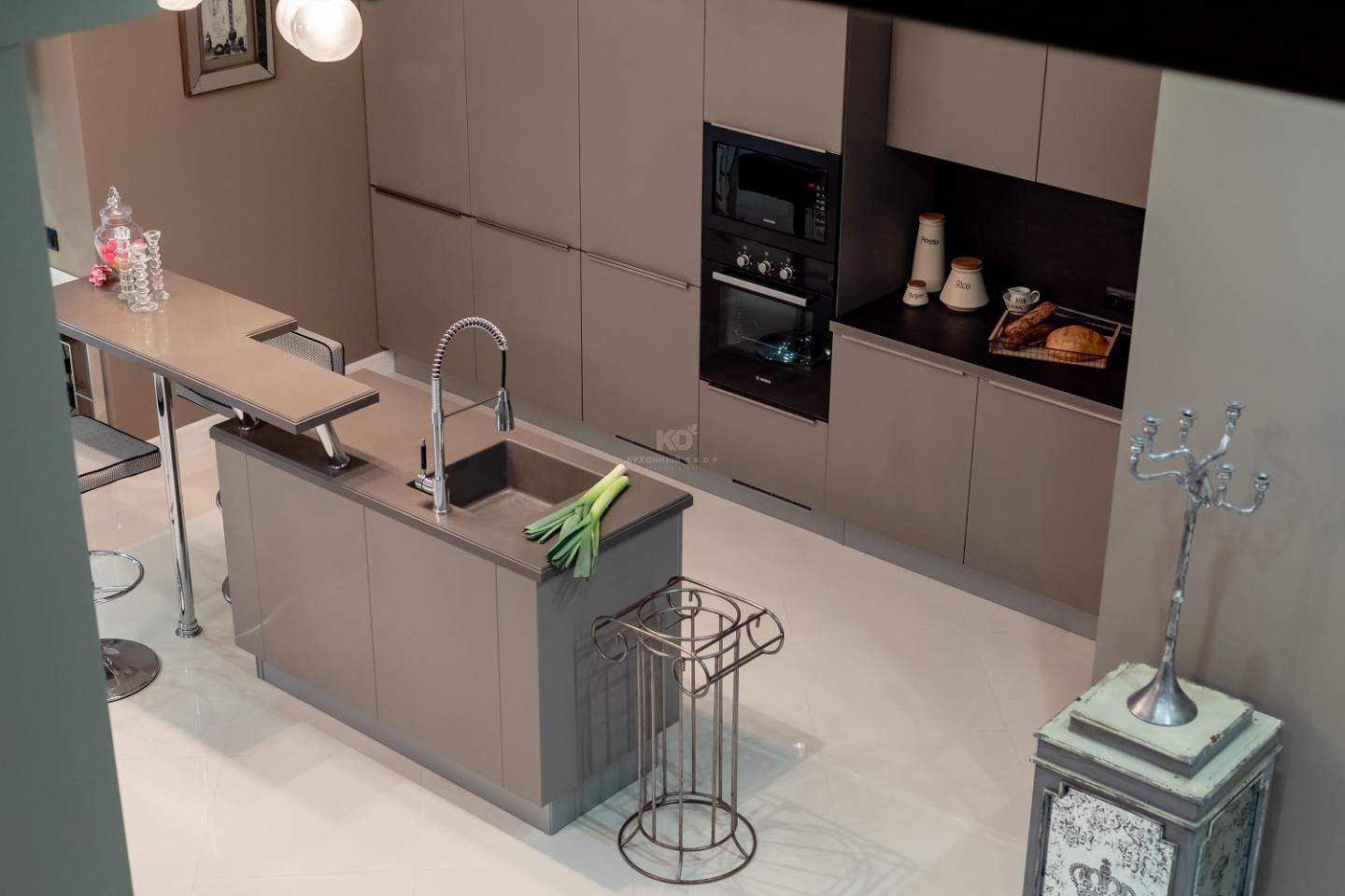 Для реализации проекта Елена выбрала модель «Ханна Стил» с фасадами «Extra Touch Matt». Их бархатистая текстура великолепно смотрится в мягких, благородных цветах. И хорошо перекликается с окружающим пространством! Оттенок фасадов чуть темнее цвета стен. Благодаря такой палитре кухня кажется продолжением интерьера: она одновременно и ненавязчива, и выразительна.