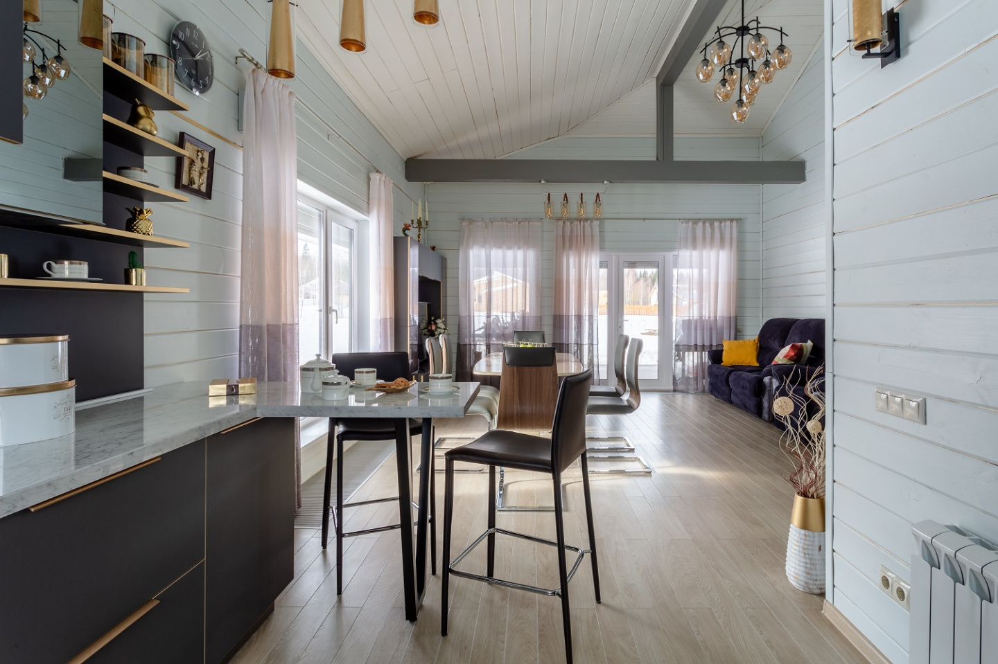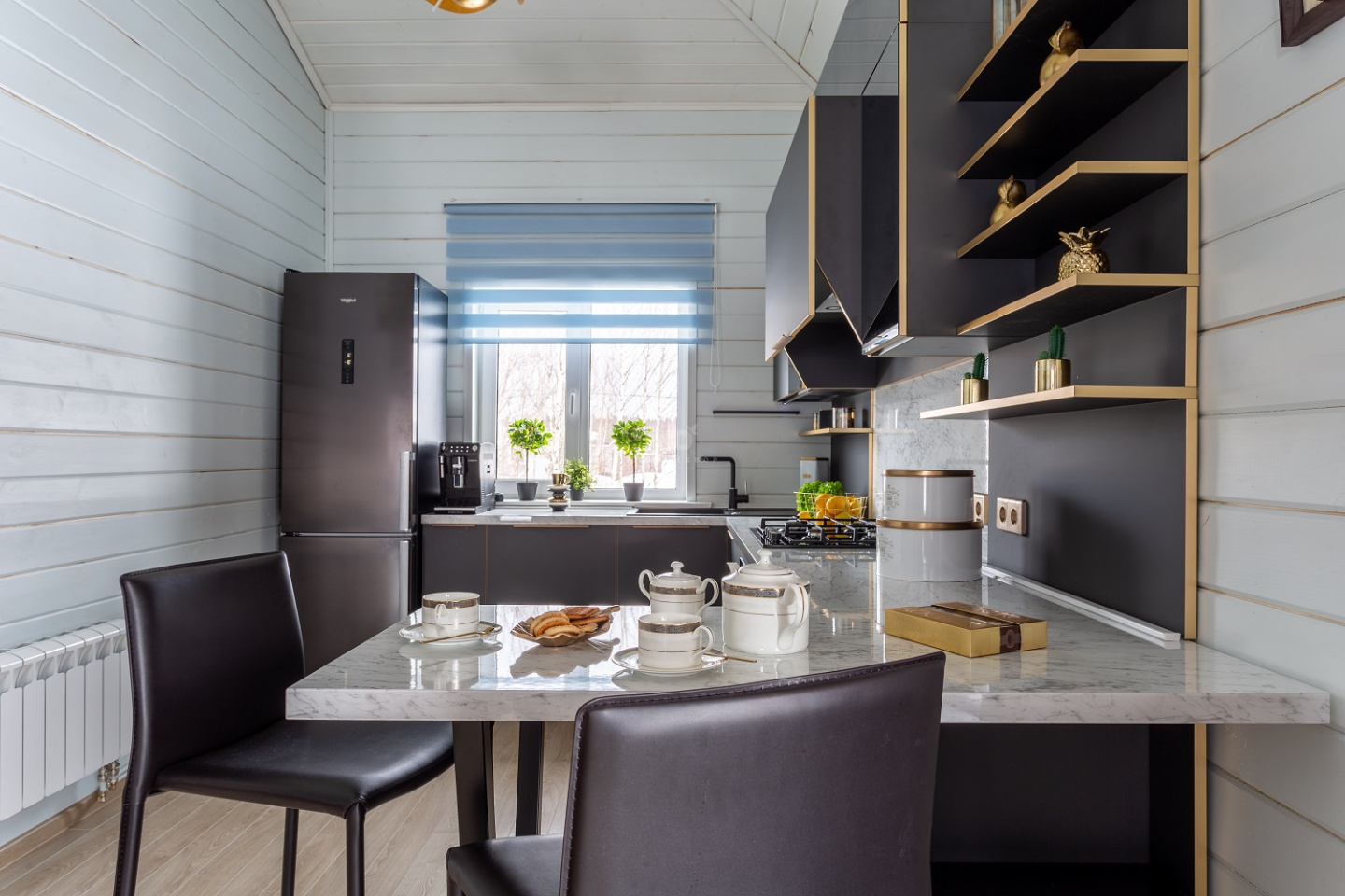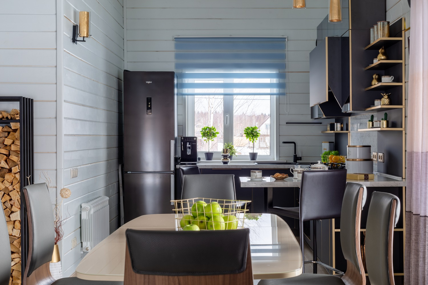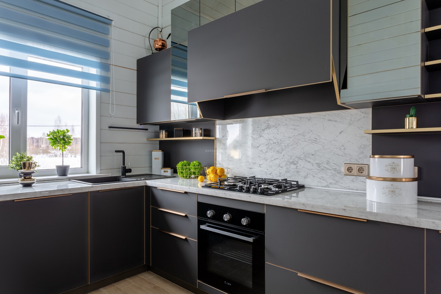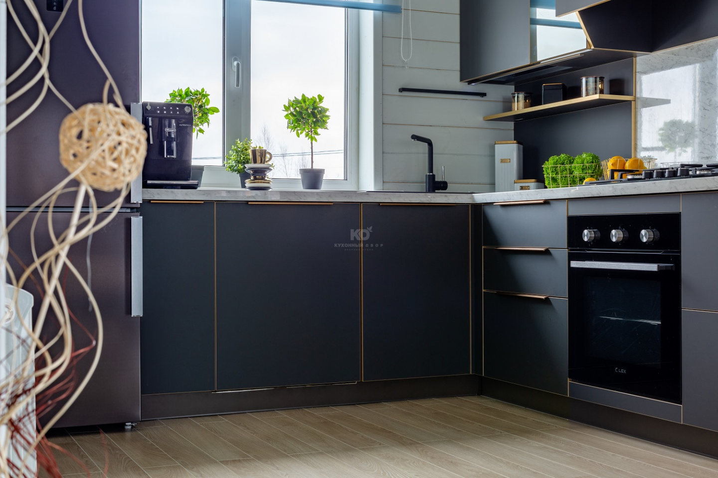 Красивый уютный дом с белыми стенами и лёгким, изящным декором. Как думаете, какого цвета кухня подойдёт такому дому? Ну, конечно же, чёрная! А если конкретнее – чёрная «Ханна Стил» от бренда «Кухонный Двор»! Эта модель просто идеально вписалась в интерьеры нашей клиентки, Натальи Нечаевой! Почему «Ханна» смотрится здесь столь гармонично? Давайте разбираться!