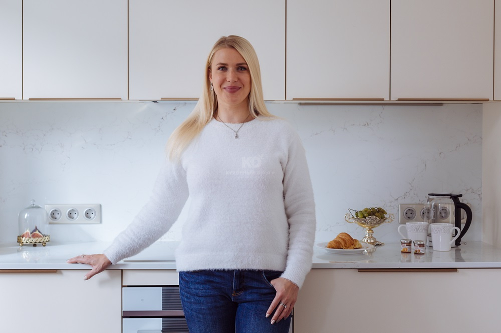 Великолепный снаружи, «Дом под юбкой» должен быть не менее неотразимым внутри! «Кухонный Двор» ручается – одна из здешних квартир точно безупречна, ведь совсем недавно в ней появилась очаровательная «Ханна Стил» от КД! Эту кухню мы создали в сотрудничестве с известным дизайнером-архитектором, Дарьей Сидоренко. Вместе нам удалось идеально вписать «Ханну Стил» в просторные апартаменты с высокими потолками! Ну что, пройдемся по основным достоинствам проекта?