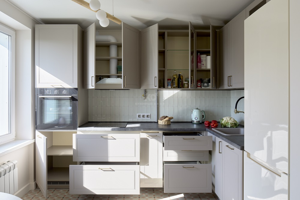 Скрытая встроенная вытяжка, чтобы не портить стильный дизайн нежной «Леи».