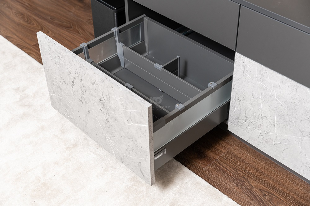 Обращаем Ваше внимание, что цена за погонный метр включает в себя: фасады выбранной категории, влагостойкую столешницу HPL (Германия) высокой прочности, корпуса ЛДСП Egger (Германия) с кромкой ABS, ящики с доводчиками , петли с доводчиками, ручки, алюминиевый поддон в стол под мойку, сушка (Италия), цоколь Volpato (Италия). Из расчета в размере 2400 мм.
