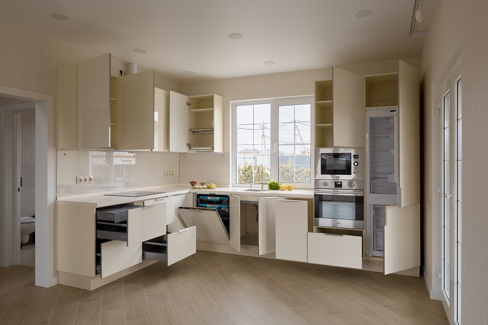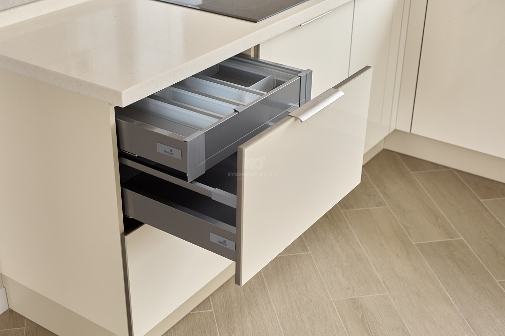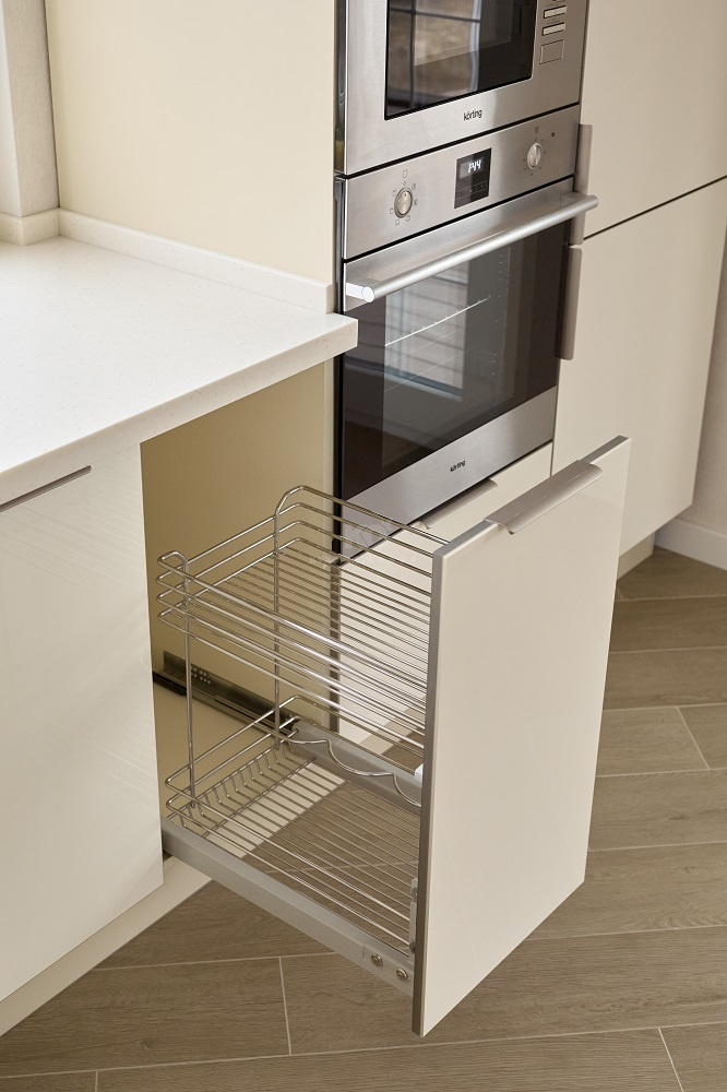 Хозяев также приятно порадует большое количество вместительных ящиков полного выдвижения и современные системы хранения.