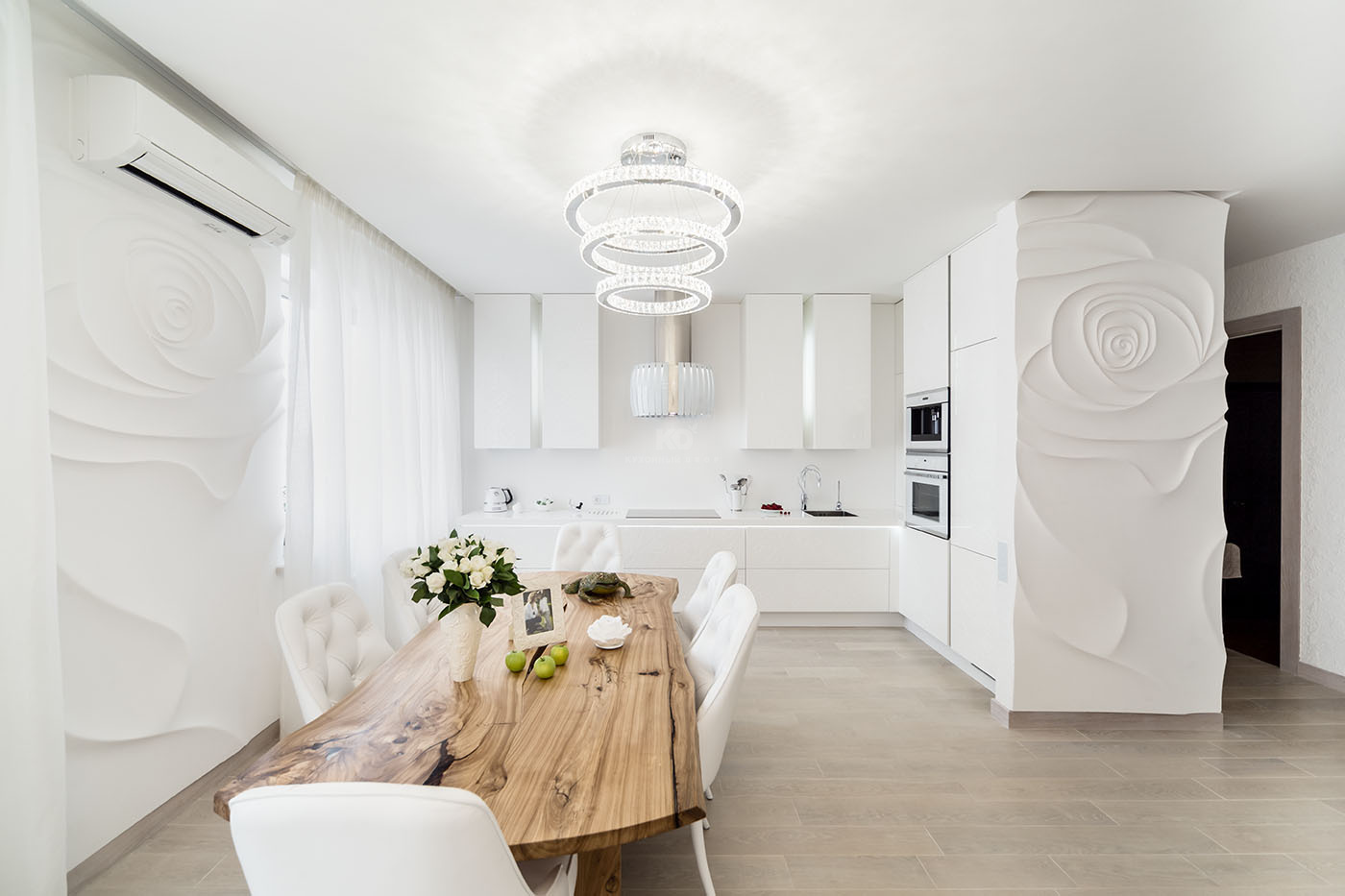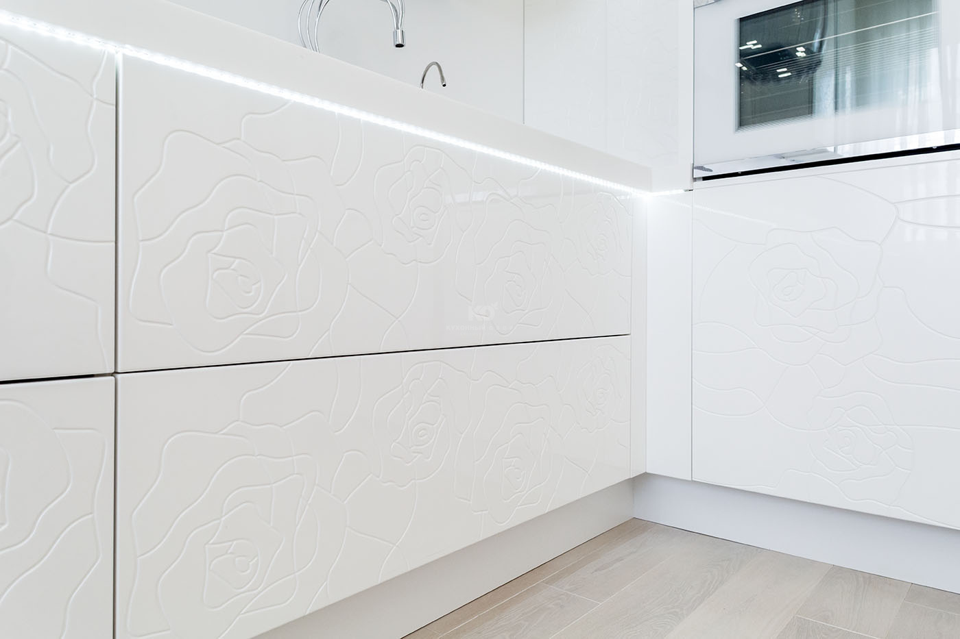 Лёгкость, чистота и большая любовь к белым розам. Эти образы вдохновили Анну на обновление интерьеров, а наших дизайнеров – на создание очередного шедевра! Соединив современный стиль с природными мотивами, «Кухонный Двор» наполнил квартиру нашей клиентки неповторимыми чувствами!