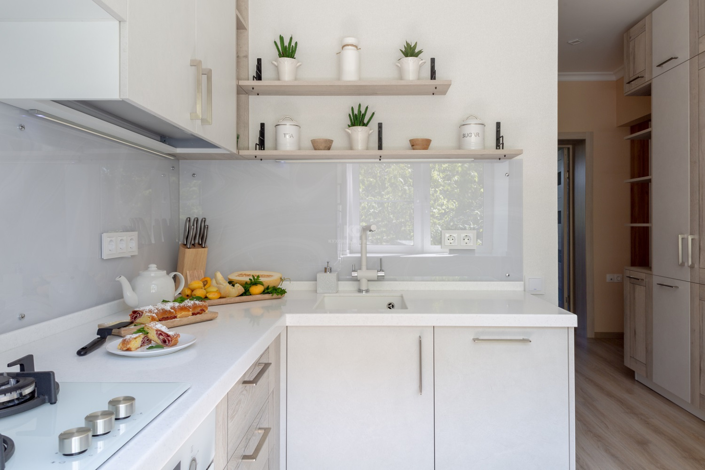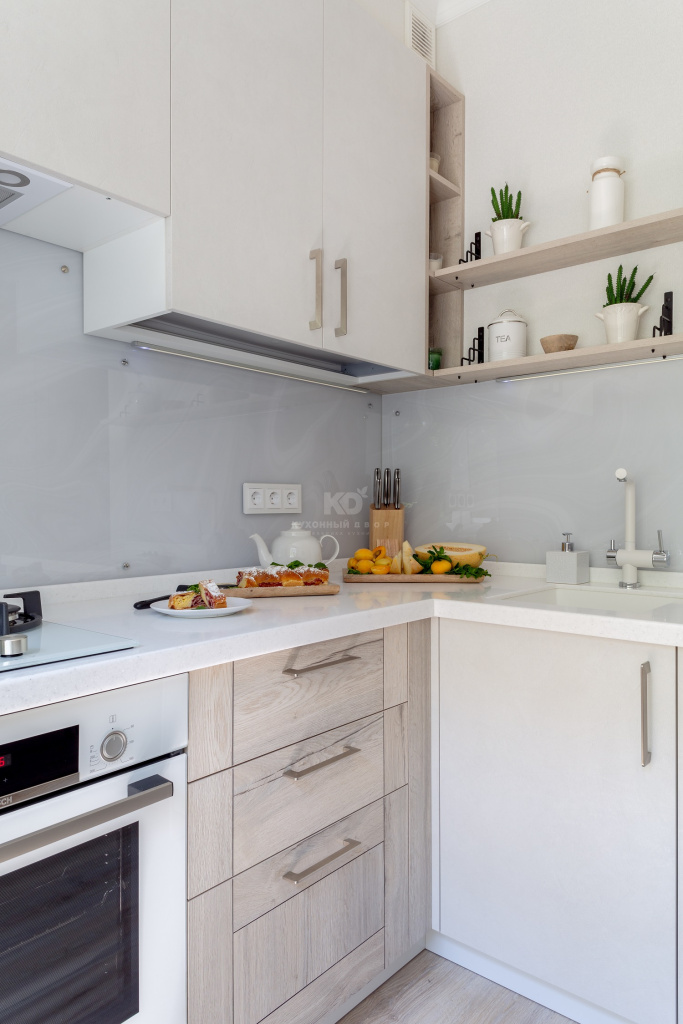 А еще здесь есть место для самовыражения! Над мойкой расположены две длинные полки, которые идеально подходят для размещения посуды, ингредиентов и просто милых сердцу мелочей. На этой кухне не просто готовят. Здесь наслаждаются уютом и красотой!