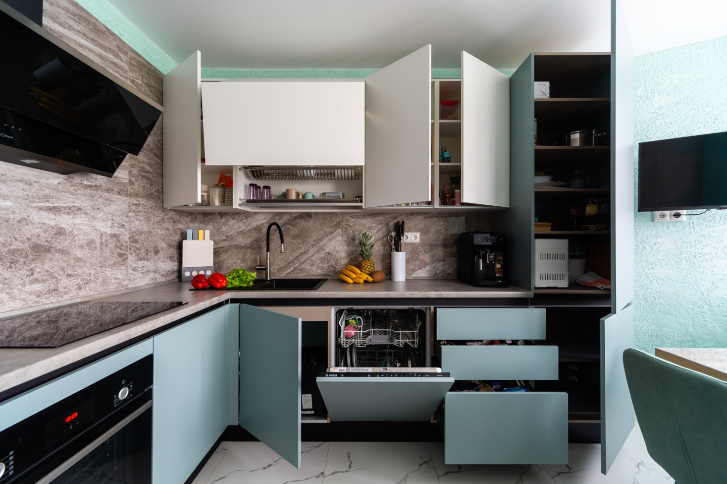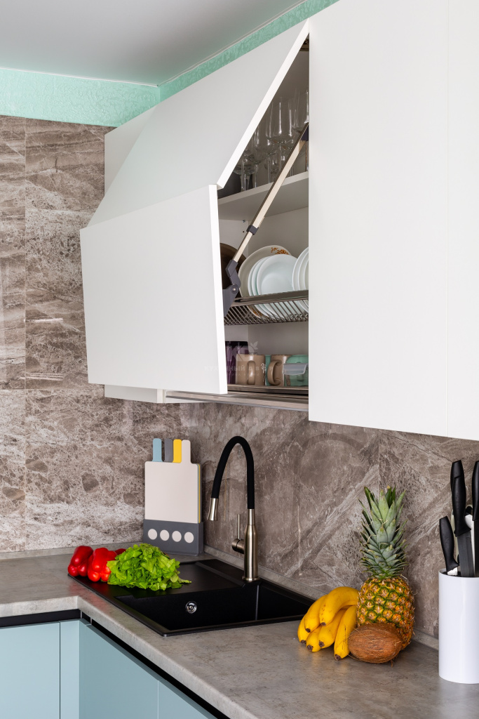 Как думаете, какой цвет у удачи? Очень возможно, что нежно-голубой с добавлением белого и чёрного. По крайней мере именно такая палитра у гарнитура «Стоун Колор», установленного в квартире Валентины Цыбы. И мы не зря заговорили об удаче, ведь Валентина получила эту кухню с невероятной скидкой в 100 000 рублей как одна из победительниц акции «Дарим Кухни» от КД! Получается, хозяйке повезло с нами? Да, как и нам с ней, ведь Валентина – обладательница прекрасного вкуса. В этом проекте воплотились все её идеи об удобном минималистичном интерьере!