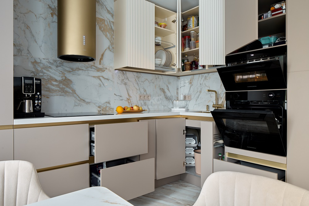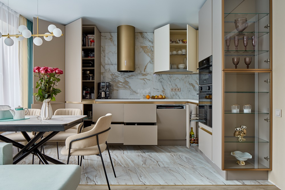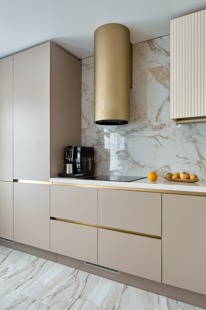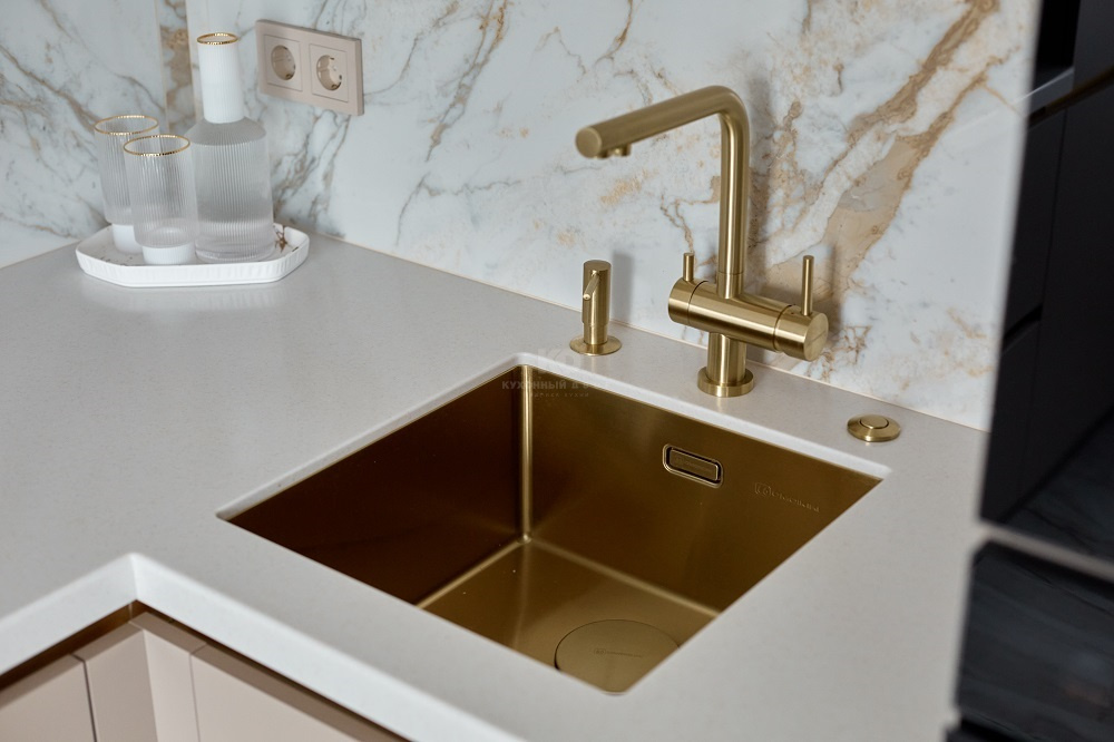 Роскошная песочная кухня с мраморно-золотыми акцентами