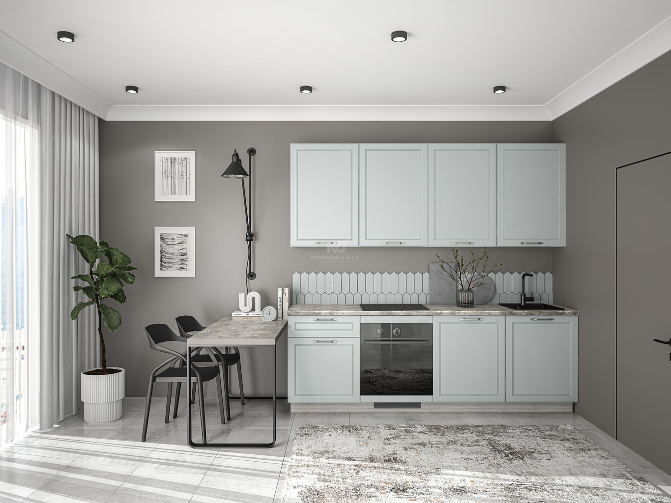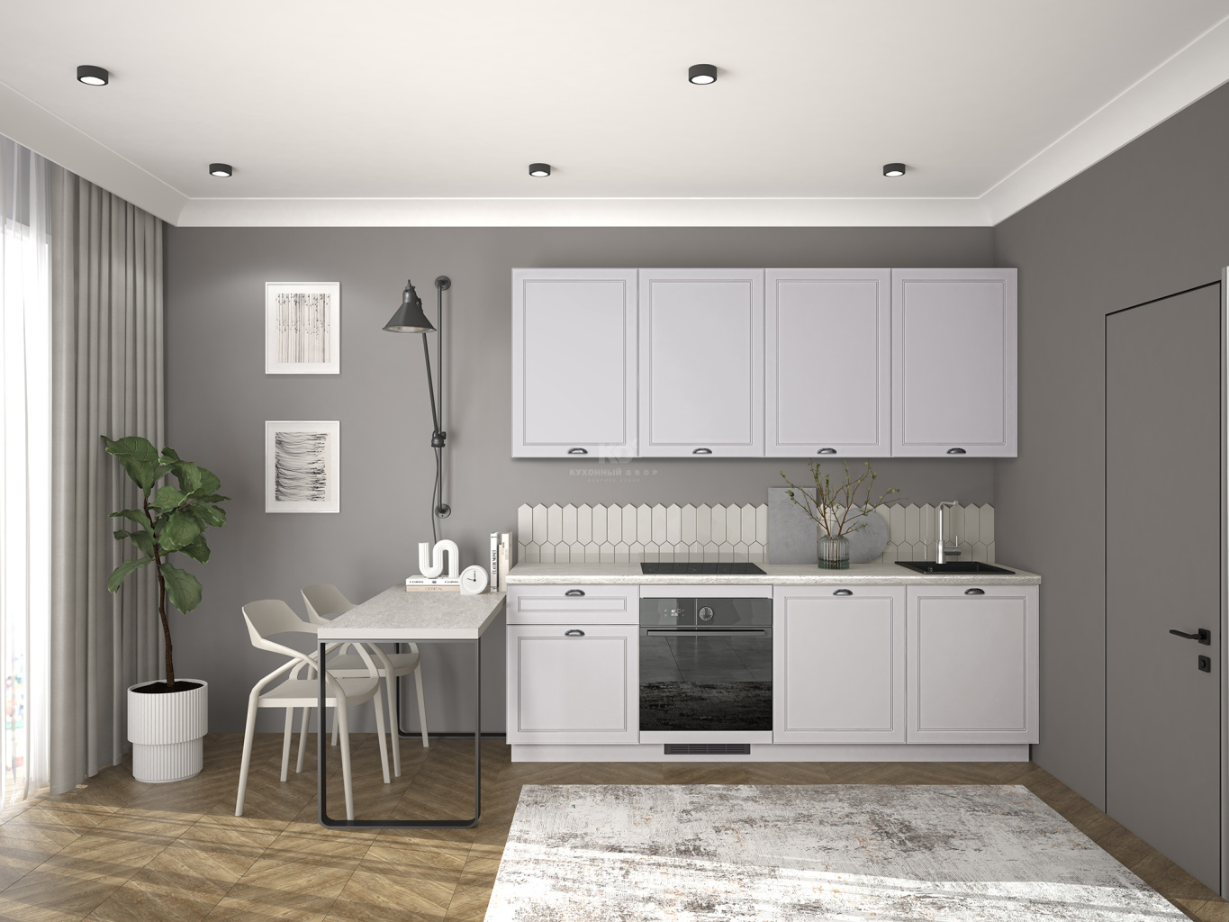Лея от бренда «Кухонный Двор» — это гармоничное сочетание классической эстетики и современных технологий. Кухня выполненная в универсальной прямой планировке, органично вписывается в любой интерьер и создаёт атмосферу уюта и тепла в доме.
