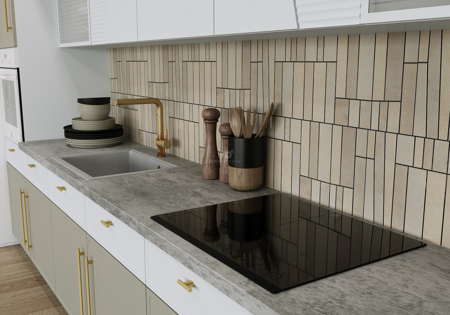 Обращаем Ваше внимание, что цена за погонный метр включает в себя: фасады выбранной категории, влагостойкую столешницу HPL (Германия) высокой прочности, корпуса ЛДСП Egger (Германия) с кромкой ABS, ящики с доводчиками , петли с доводчиками, ручки, алюминиевый поддон в стол под мойку, сушка (Италия), цоколь Volpato (Италия). Из расчета в размере 2400 мм.