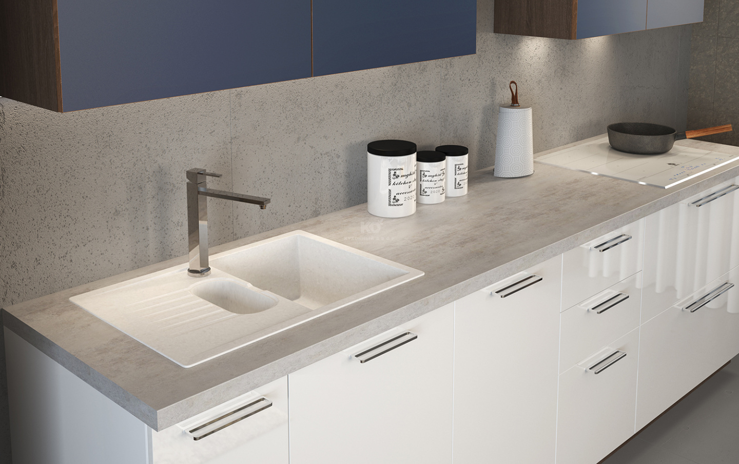 Обращаем Ваше внимание, что цена за погонный метр включает в себя: фасады выбранной категории, влагостойкую столешницу HPL (Германия) высокой прочности, корпуса ЛДСП Egger (Германия) с кромкой ABS, ящики с доводчиками , петли с доводчиками, ручки, алюминиевый поддон в стол под мойку, сушка (Италия), цоколь Volpato (Италия). Из расчета в размере 2400 мм.