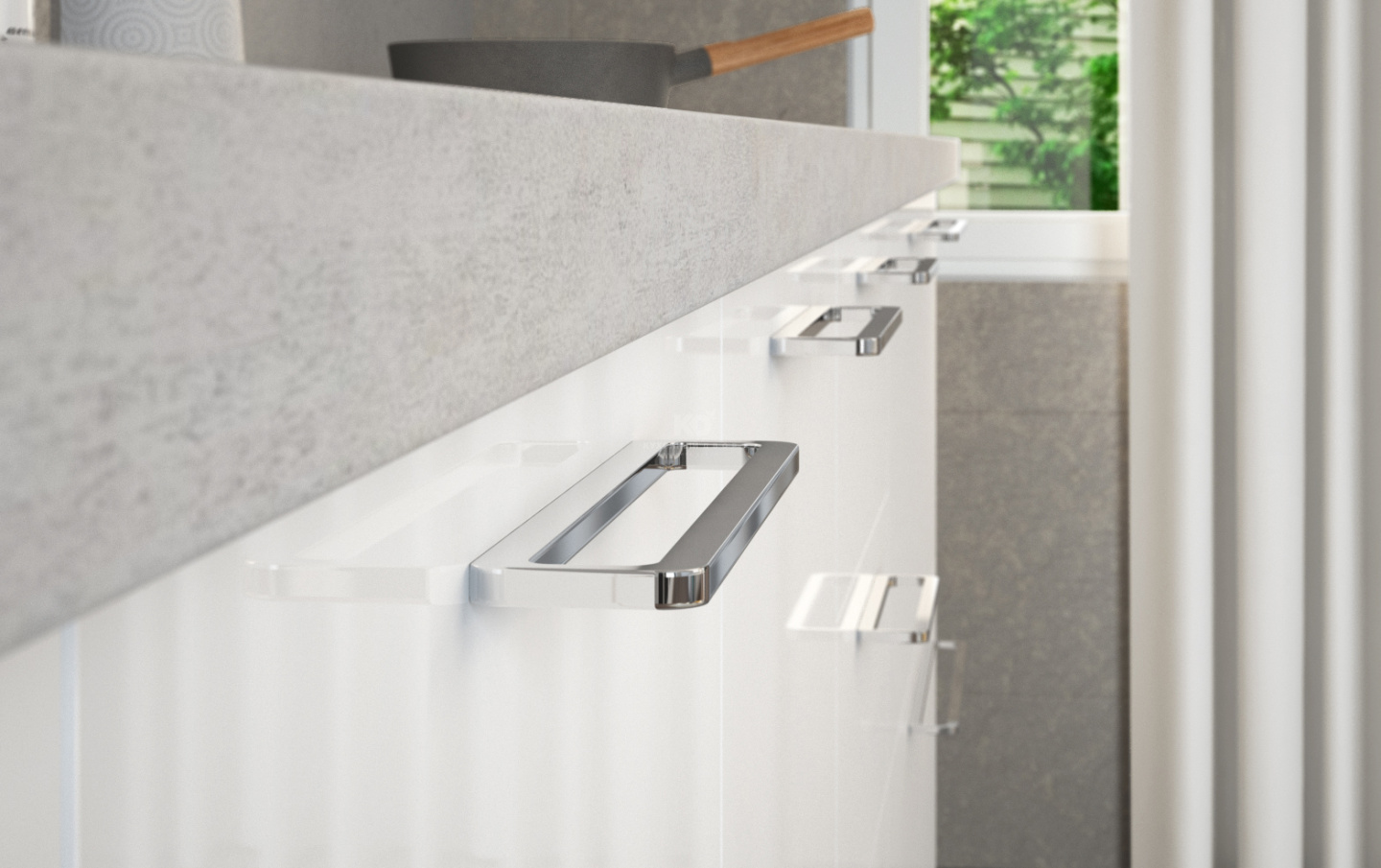 Фасады «Эстер» могут отличаться по цветофактуре от материала корпуса, а могут, напротив, быть полностью идентичными друг другу. Кухня полна необычных сочетаний, однако каждое из них чётко выверено и не выходит «за рамки» вкуса. Кстати о рамках: торцевые части фасадов и открытых полок здесь словно очерчивают контуры некоторых зон. Это делает характер модели ещё более смелым и игривым. Нестандартная внешность в сочетании с превосходным техническим оснащением – вот формула красоты, имя которой «Эстер»!