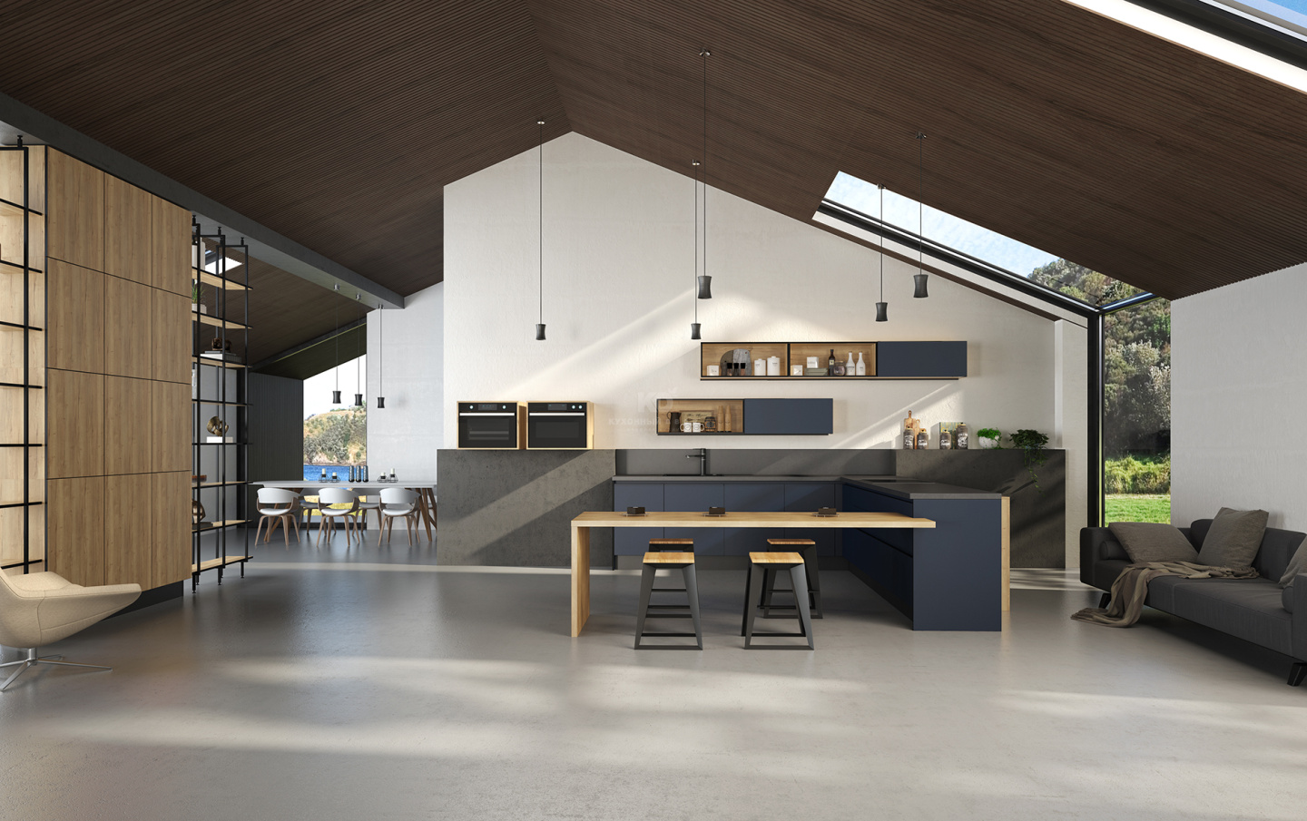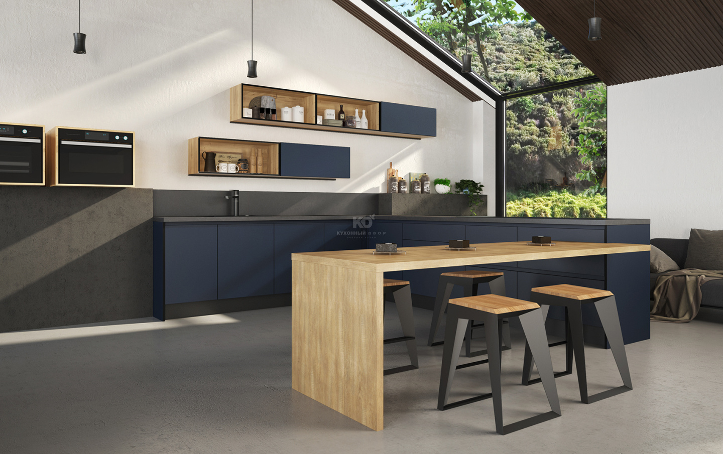 Истинные творцы черпают вдохновение в том, что их окружает. И не забывают любоваться небом! Чтобы небесное и земное очарование всегда было рядом с Вами, дизайнеры «KD-Lab» создали новую композицию кухни «Ханна Блэк». Она рождена из невесомой лёгкости, красоты натуральных фактур, а также завораживающей комбинации чёрных элементов и цвета «индиго».
