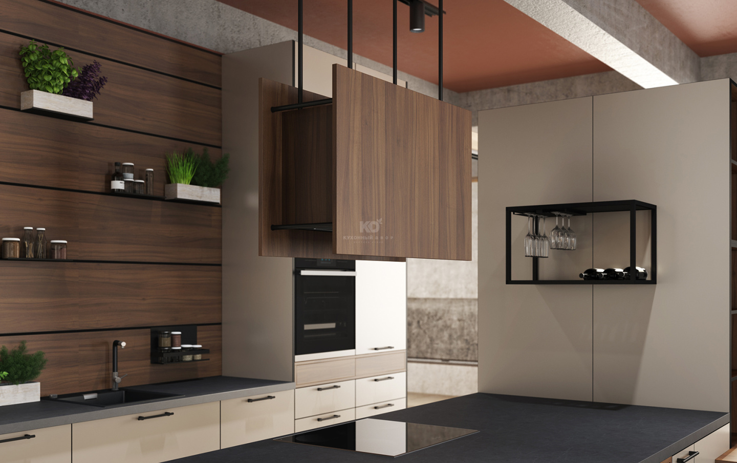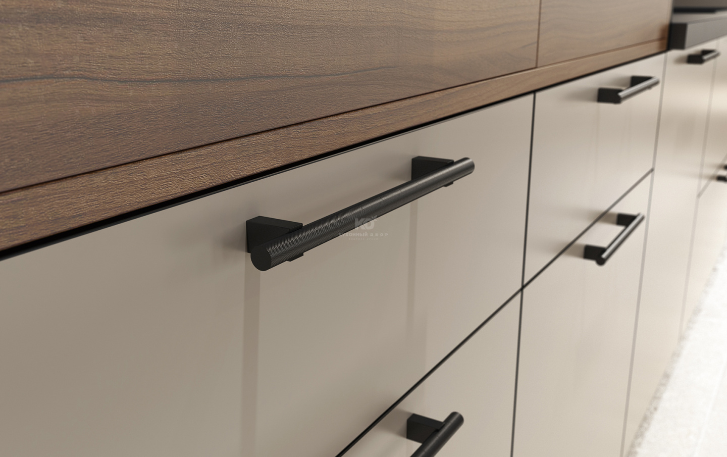 Как это работает? Берем поверхности с фактурой ореха Дижон, добавляем фасады цвета «кашемир», соединяем всё это в идеальных пропорциях, подчёркиваем угольно-чёрными кромками – и вуаля! Так получается утончённая кухня, в которой тепло и уют царят в любую погоду! А для чтобы сделать получившийся образ ещё более очаровательным, используйте уникальные интерьерные элементы. Например: