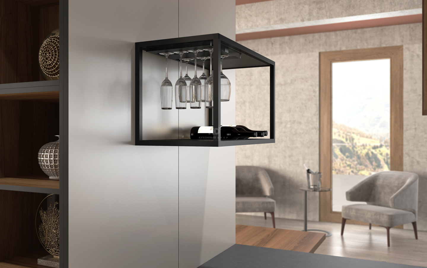 • Систему «Smart Cube» с держателями для бутылок и бокалов. Стильное решение для домашней винотеки!