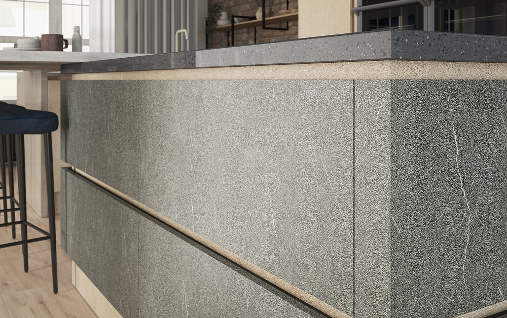 Эта модель первой в коллекции КД получила особые фасады «Песчаник» с фактурой нанесённой вручную декоративной штукатурки. Именно такие проверхности можно встретить во внешнем и внутреннем убранстве старинных сооружений. Декор «Песчаник» имеет впечатляющий уровень детализации и приятную бархатистую поверхность. Для «Ноа Лофт» эта эксклюзивная фактура доступна в трёх цветовых исполнениях. Кухни в стиле «модерн» со столь необычными, роскошными фасадами встречаются весьма редко.