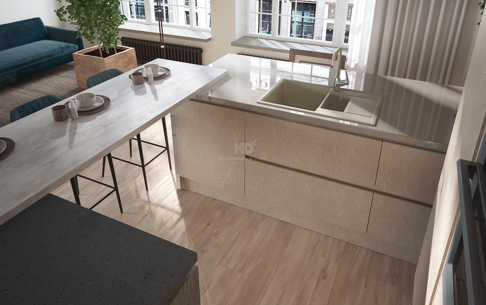 Брали кухню в ТЦ «Румер». Менеджер выслушал наши пожелания и показал нам «Ноа Песчаник». Модель понравилась сразу из-за фасадов прежде всего, т.к. у нас дома фактурные стены. Фасады под штукатурку очень хорошо смотрятся с фактурными стенами! По заказу никаких претензий – доставка и установка прошли безо всяких помарок. Спасибо, «Кухонный Двор»!