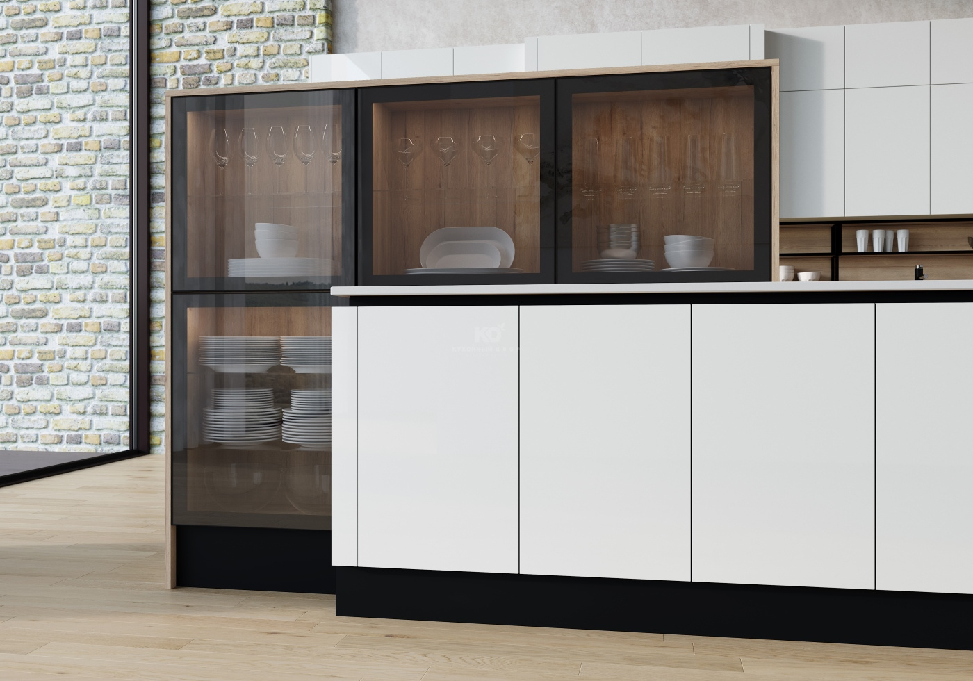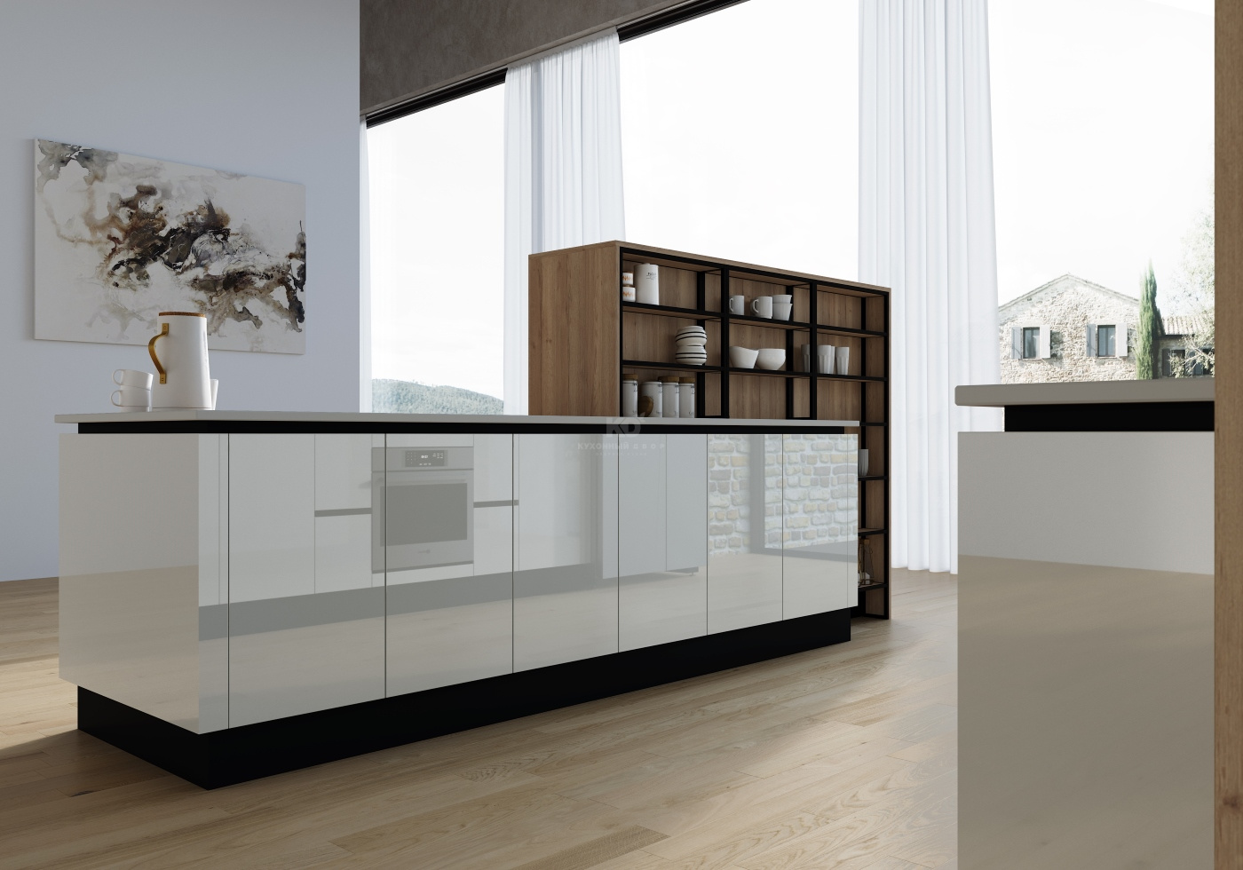 Восхитительно смотрится и уникальная Г-образная обвязка острова с полками и фасадами из стекла. Она служит прекрасным связующим звеном, объединяющим кухню и окружающий интерьер. Футуристично, но не бездушно! Фартук, столешница, обвязка и другие элементы с естественной текстурой вдыхают жизнь в совершенные формы, делая «Ричард» чем-то большим, чем просто продукт высоких технологий. Эта кухня стала живым отражением, в котором Вы видите будущее.